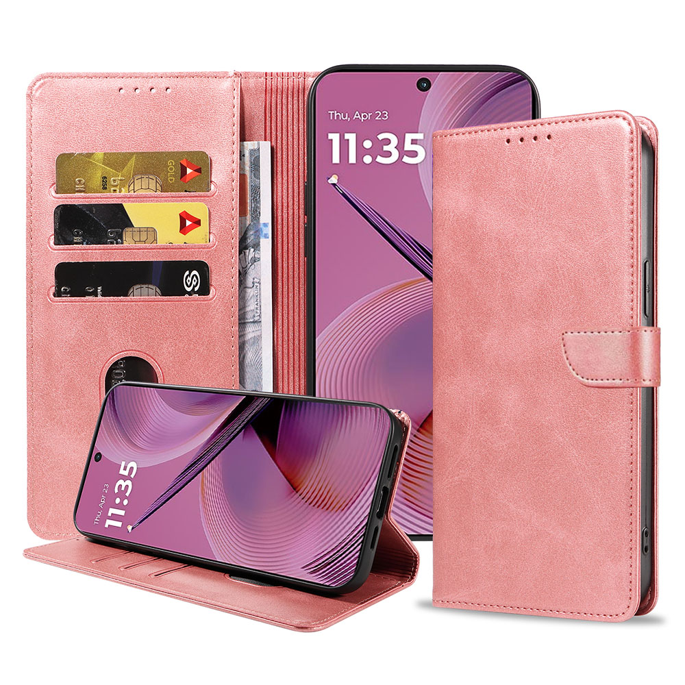 – 1x Kunstleren hoesje met magnetisch lipje Motorola Moto G55 rosé goud