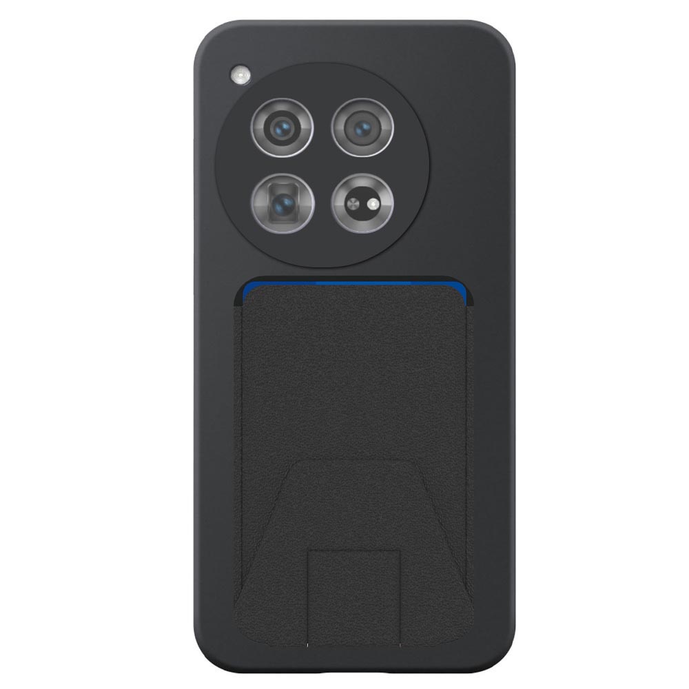 -1x Geschikt voor OnePlus 12 telefoonhoesje met verstelbare kunstleren pasjeshouder zwart