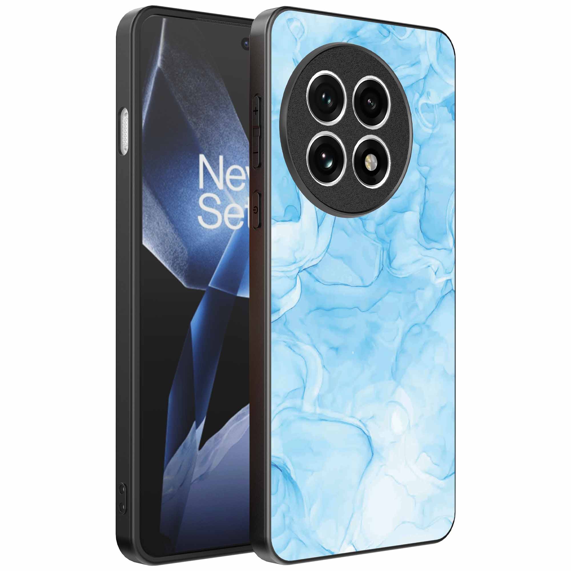 – 1x OnePlus 13R telefoonhoesje met Lichtblauw marmer design