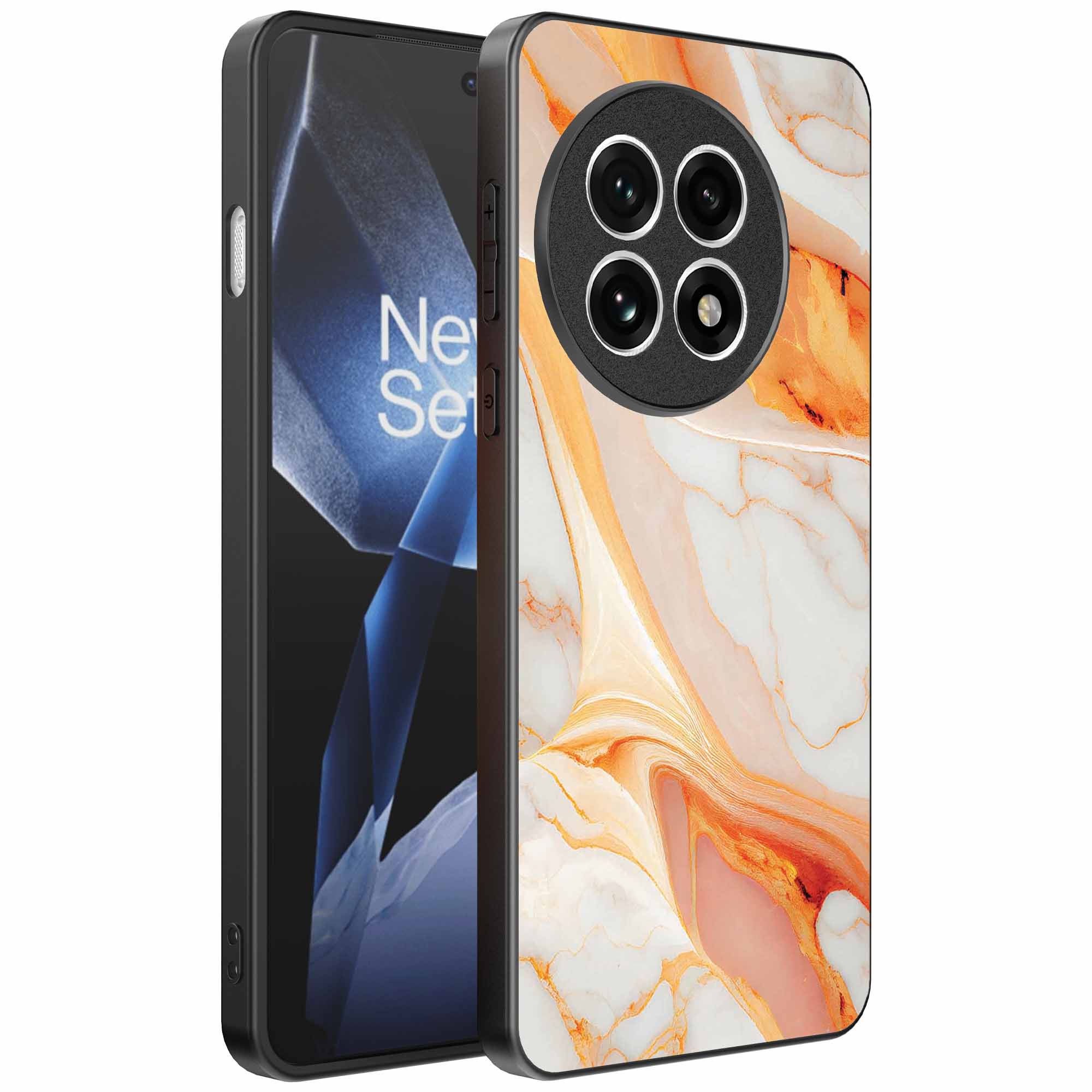 – 1x OnePlus 13R telefoonhoesje met oranje marmer design