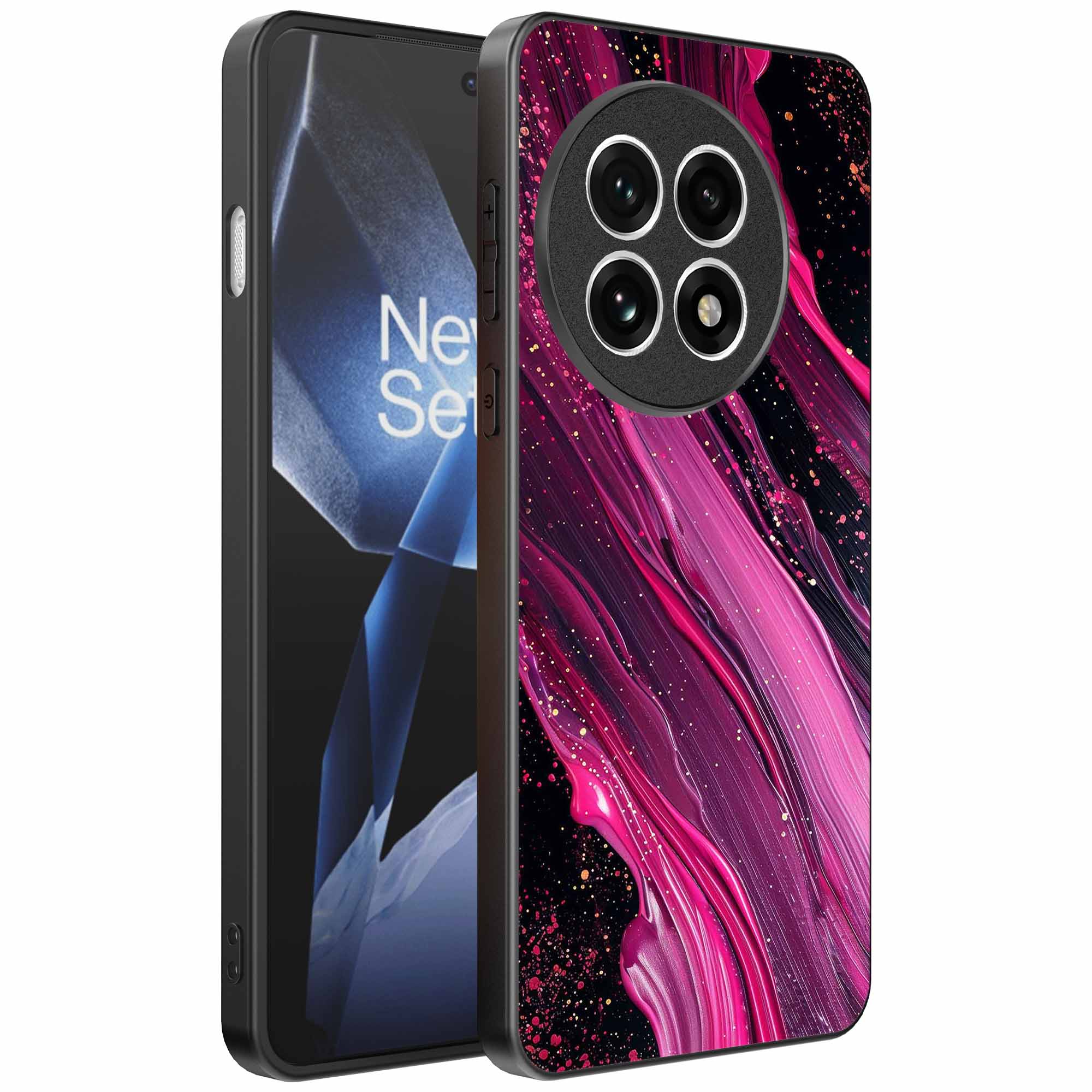 – 1x OnePlus 13R telefoonhoesje met paars roze marmer design