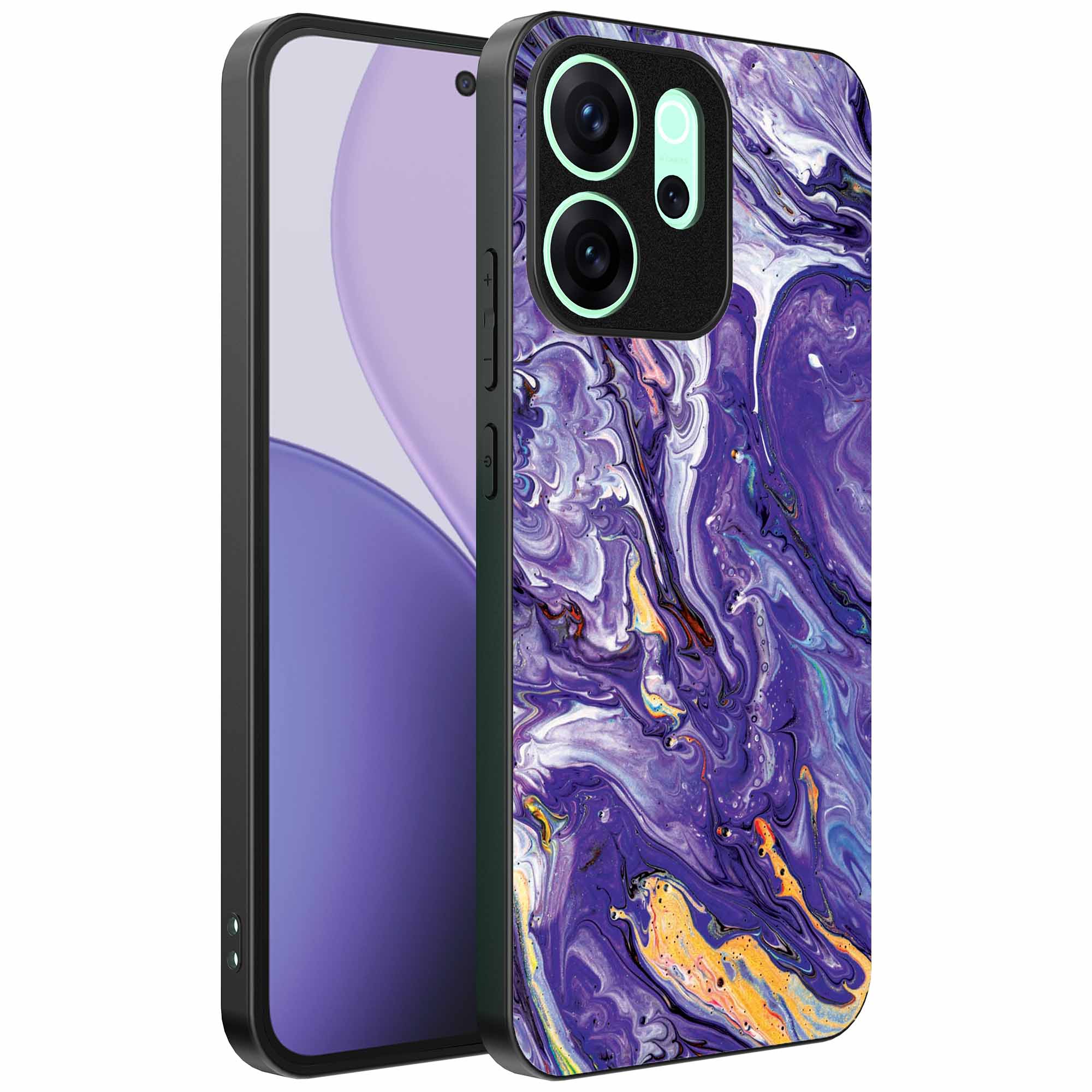 – 1x Oppo Reno 14 F telefoonhoesje met goud paars marmer design