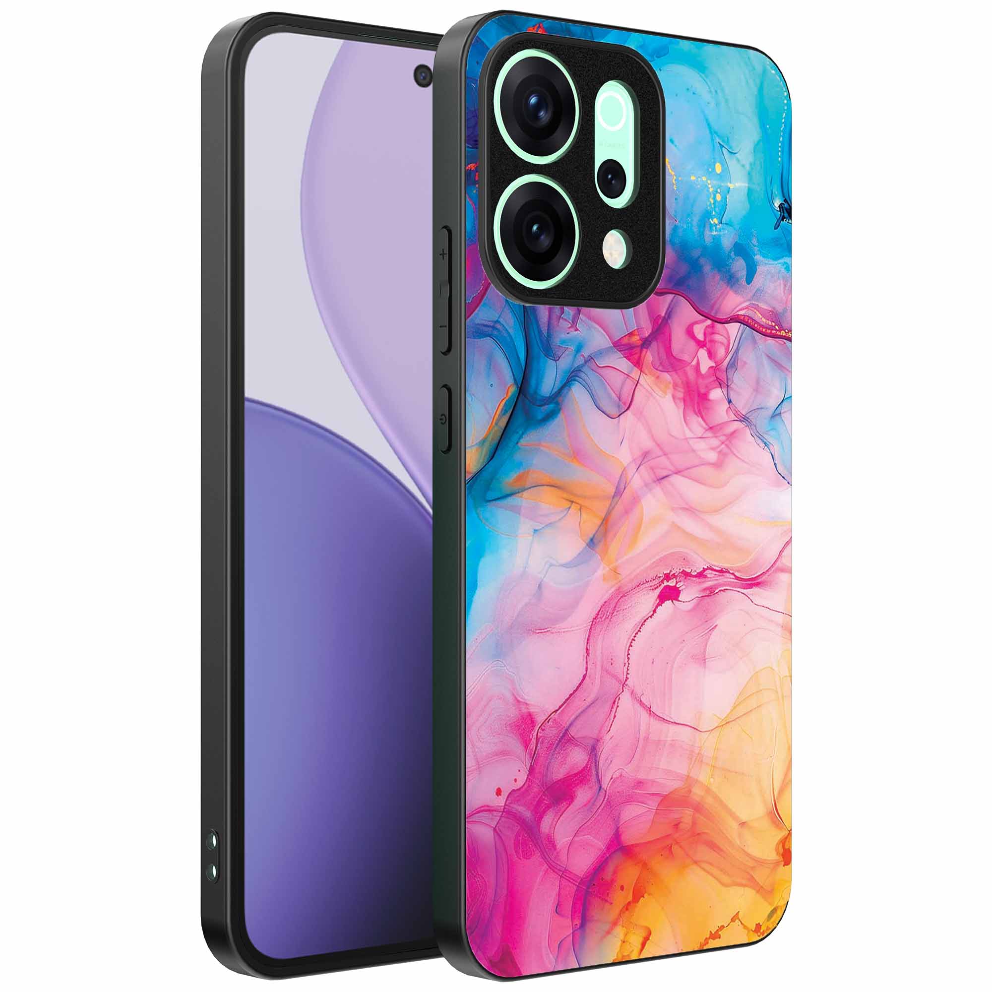 1x Telefoonhoesje voor Oppo Reno 14 Pro met regenboog acryl marmer opdruk