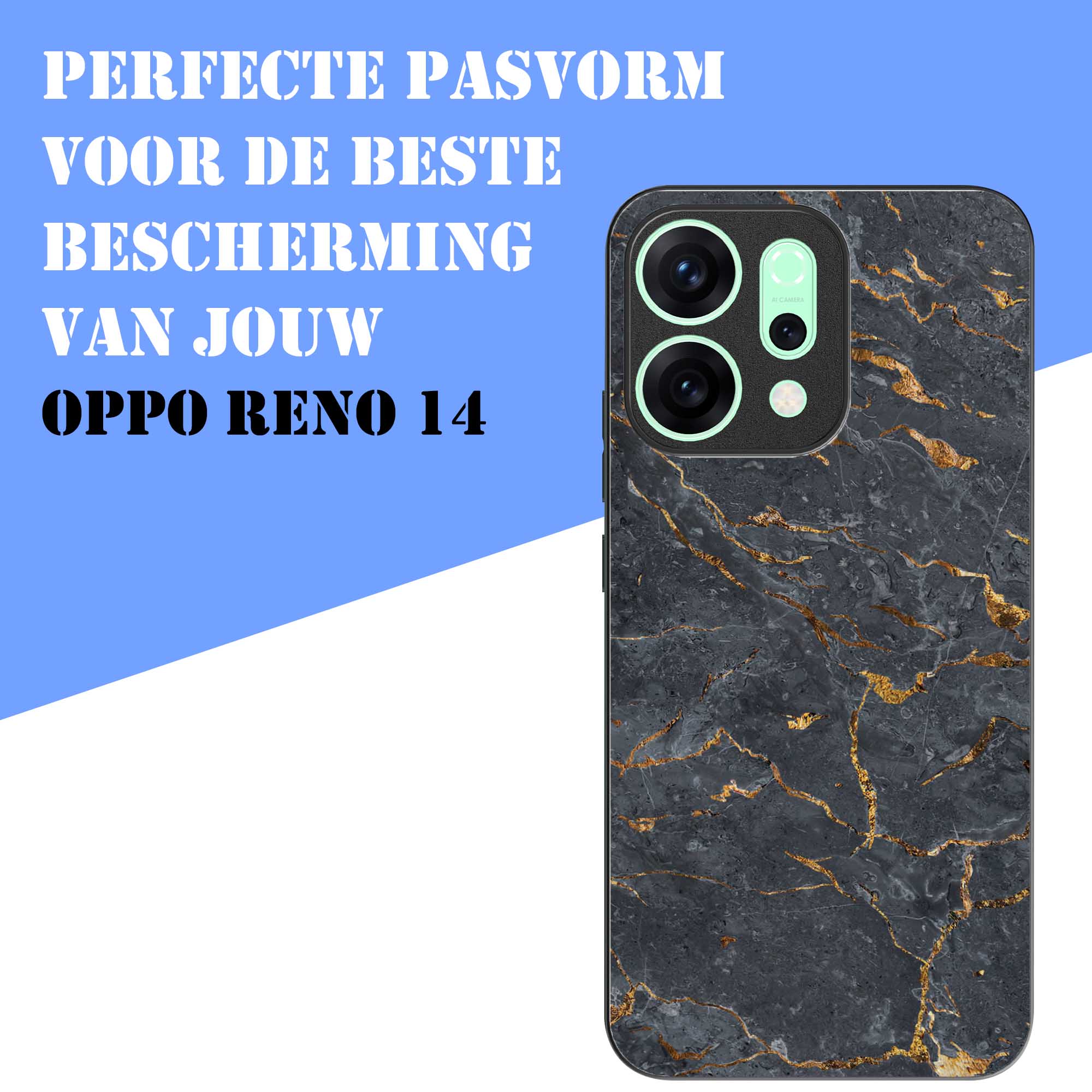– 1x Oppo Reno 14 telefoonhoesje met goud grijs marmer design
