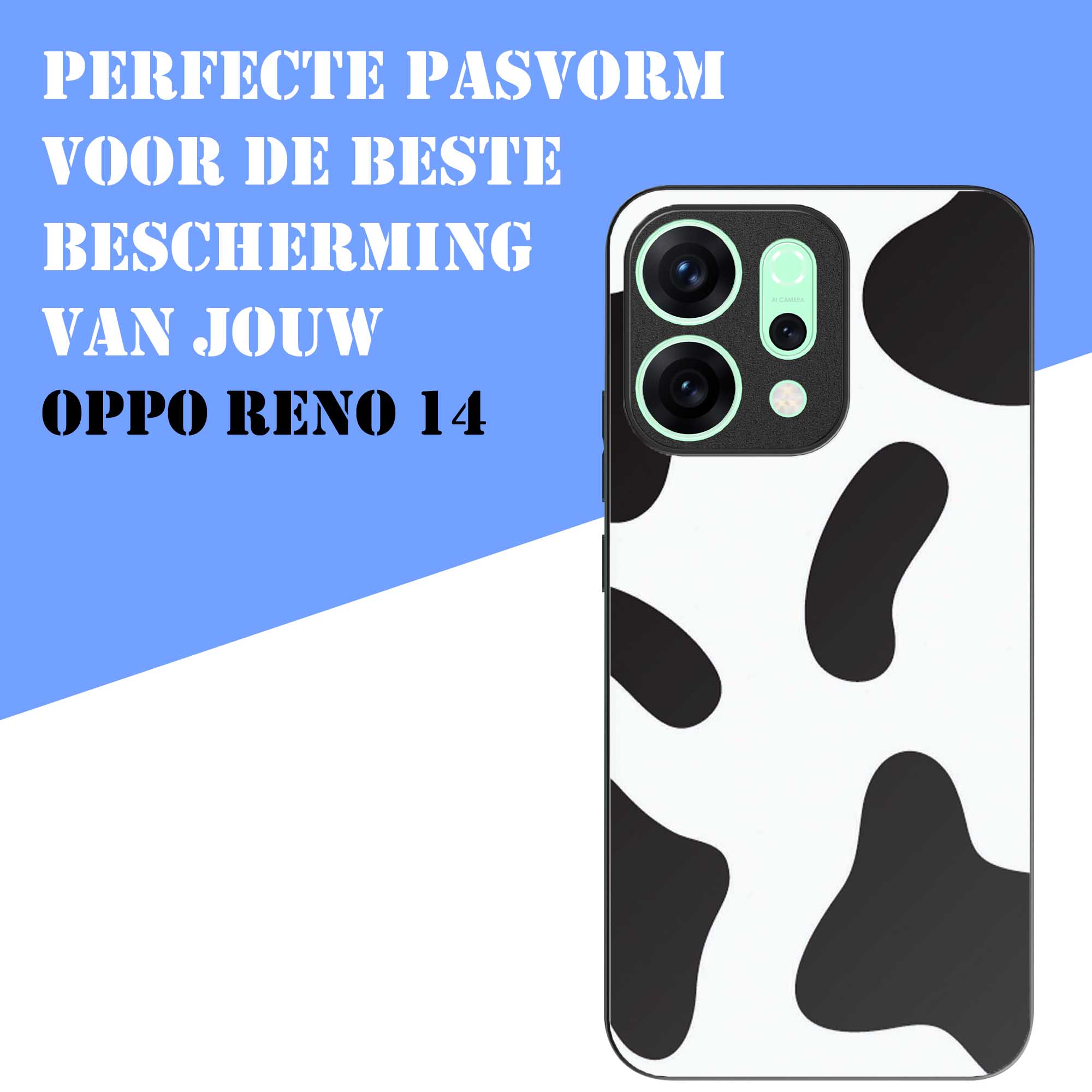 – 1x Oppo Reno 14 telefoonhoesje met zwart witte koeienvlekken design