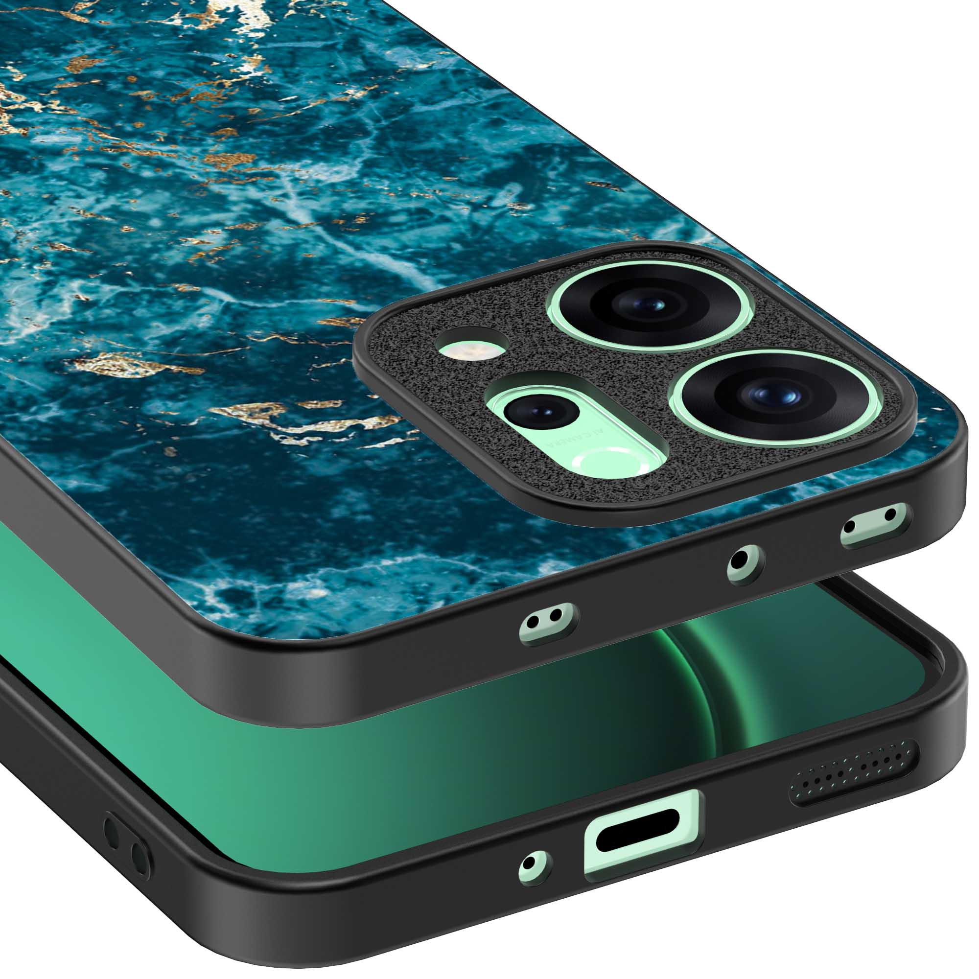 – 1x Oppo Reno 14 telefoonhoesje met blauw marmer design