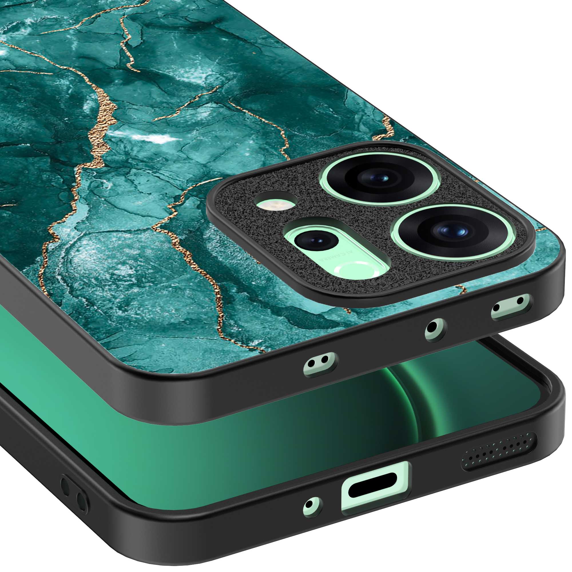 Bescherm jouw Oppo Reno 14 met het opvallende goud groene marmer design telefoonhoesje van Smartphonica. Dit hoesje biedt niet alleen bescherming tegen