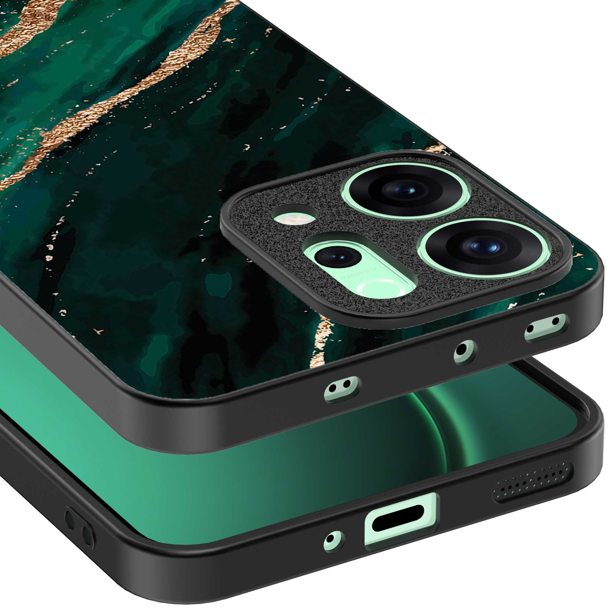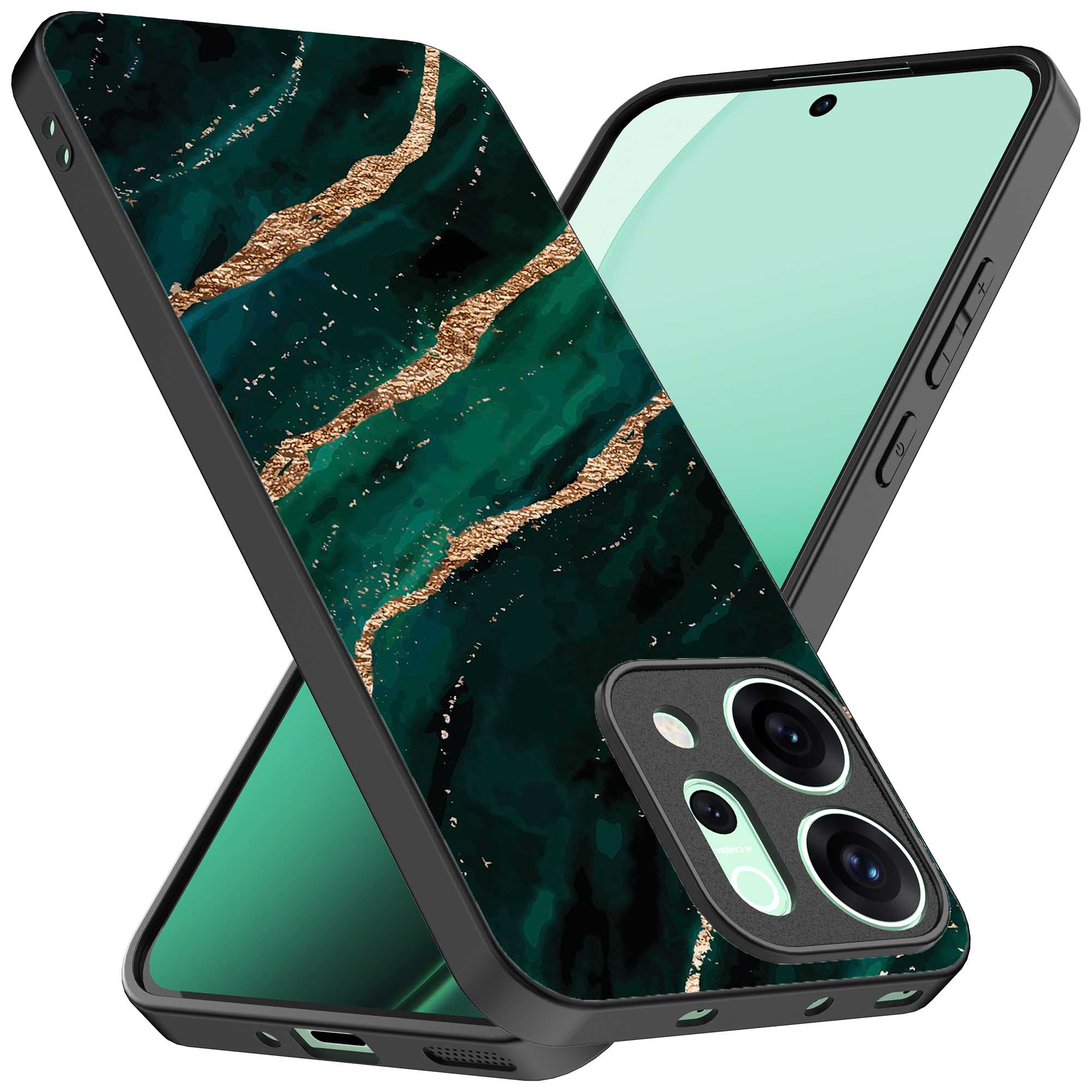 Bescherm jouw Oppo Reno 14 met het opvallende groen gouden marmer design telefoonhoesje van Smartphonica. Dit hoesje biedt niet alleen bescherming tegen