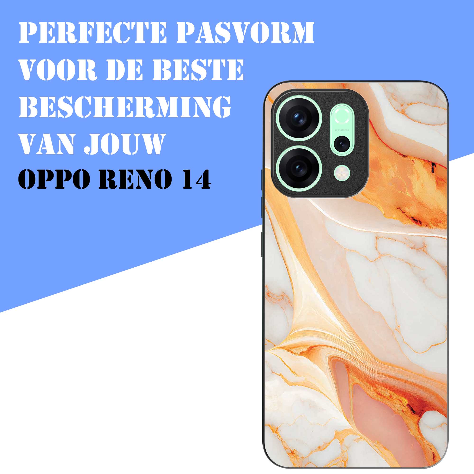 – 1x Oppo Reno 14 telefoonhoesje met oranje marmer design