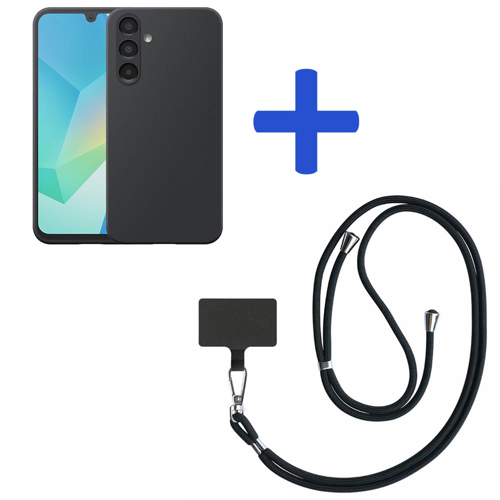 -1x Geschikt voor Samsung Galaxy A16 telefoonhoesje met zwart afneembaar koord