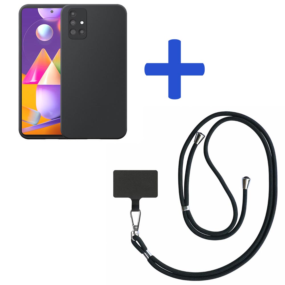 -1x Geschikt voor Samsung Galaxy M31s telefoonhoesje met zwart afneembaar koord