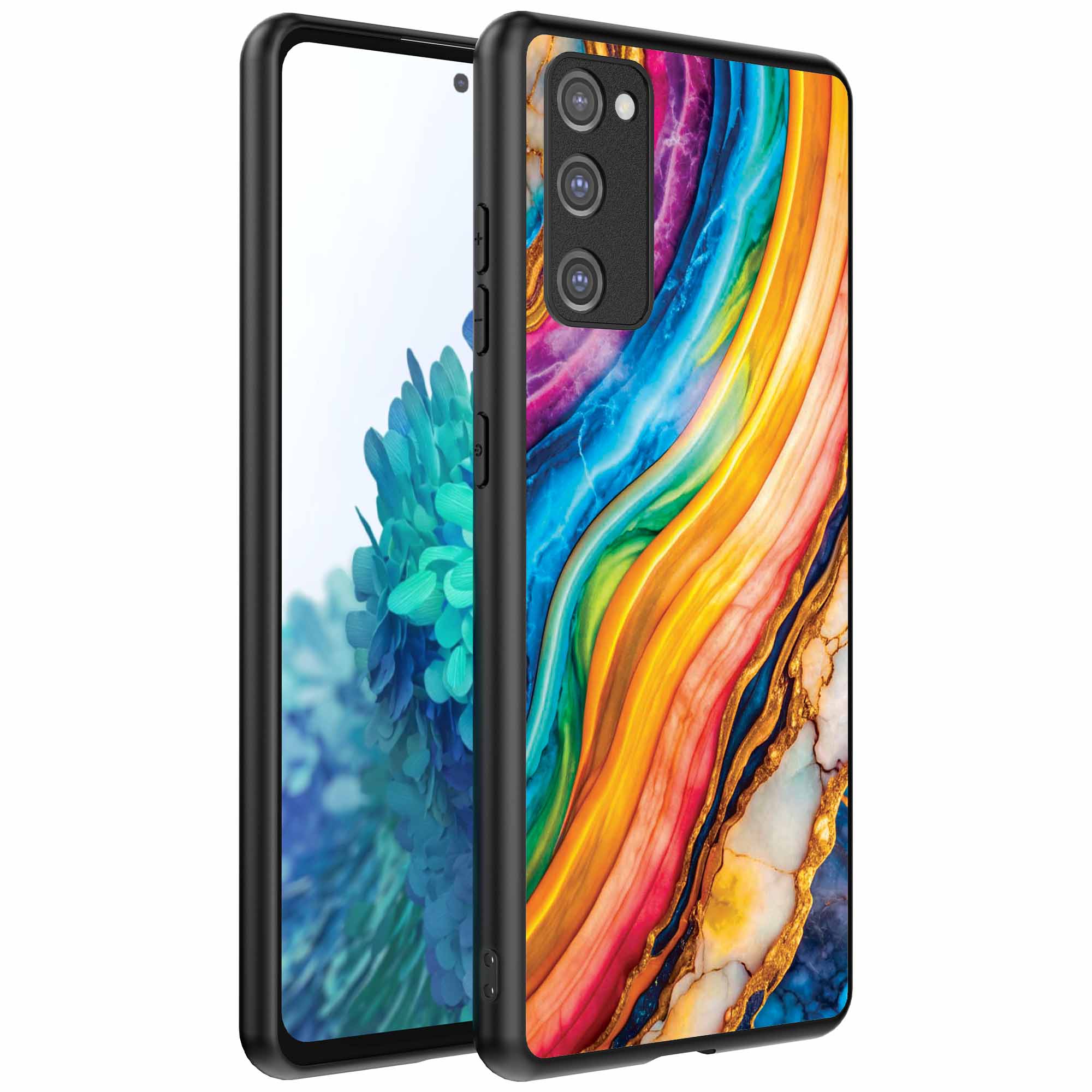– 1x Samsung Galaxy S20 FE telefoonhoesje met Regenboog Goud marmer design