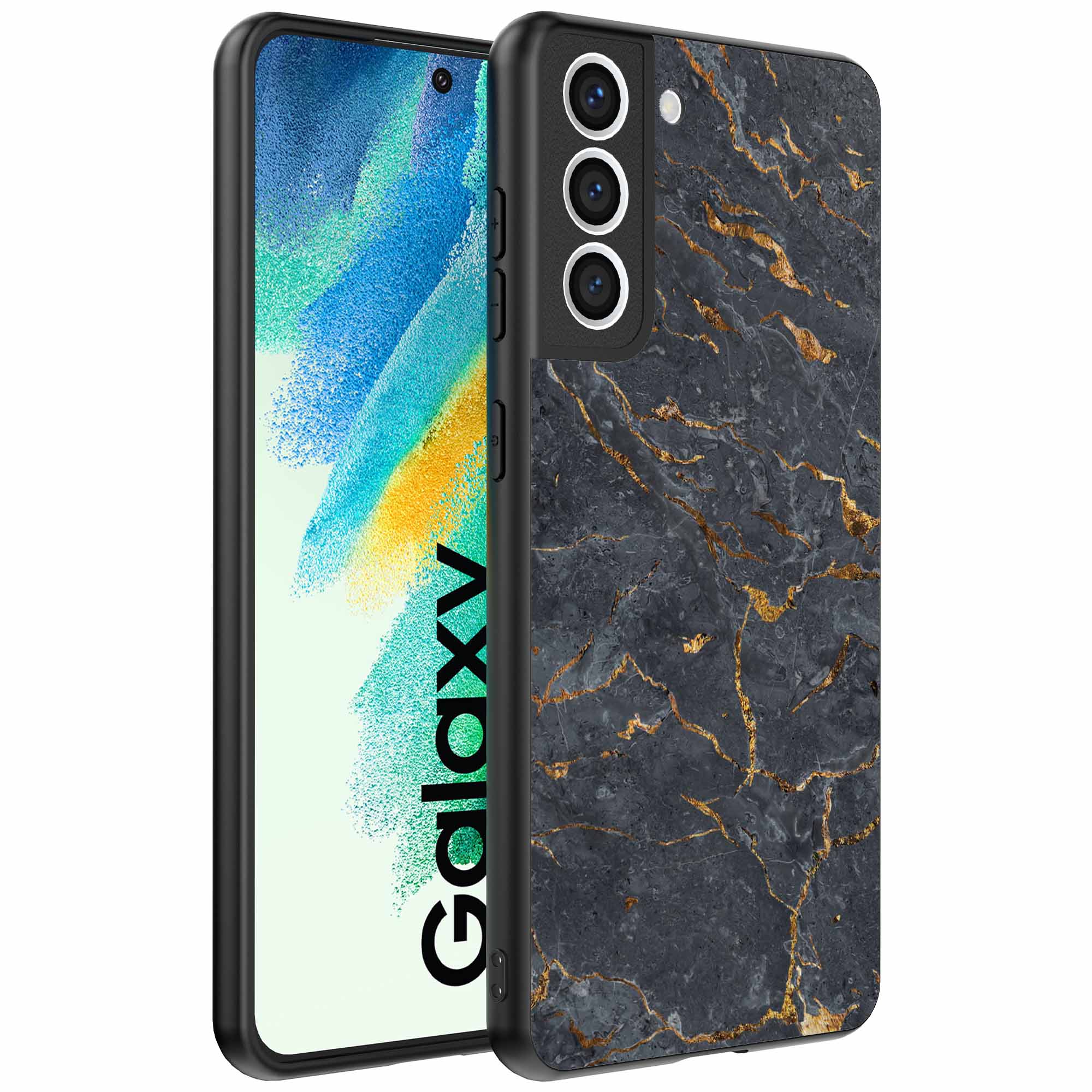 – 1x Samsung Galaxy S21 FE telefoonhoesje met goud grijs marmer design
