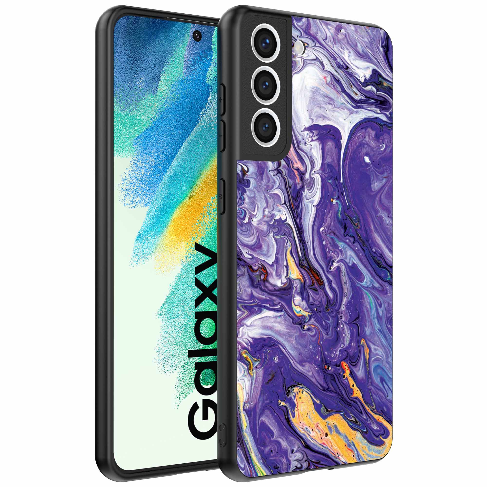 – 1x Samsung Galaxy S21 FE telefoonhoesje met goud paars marmer design