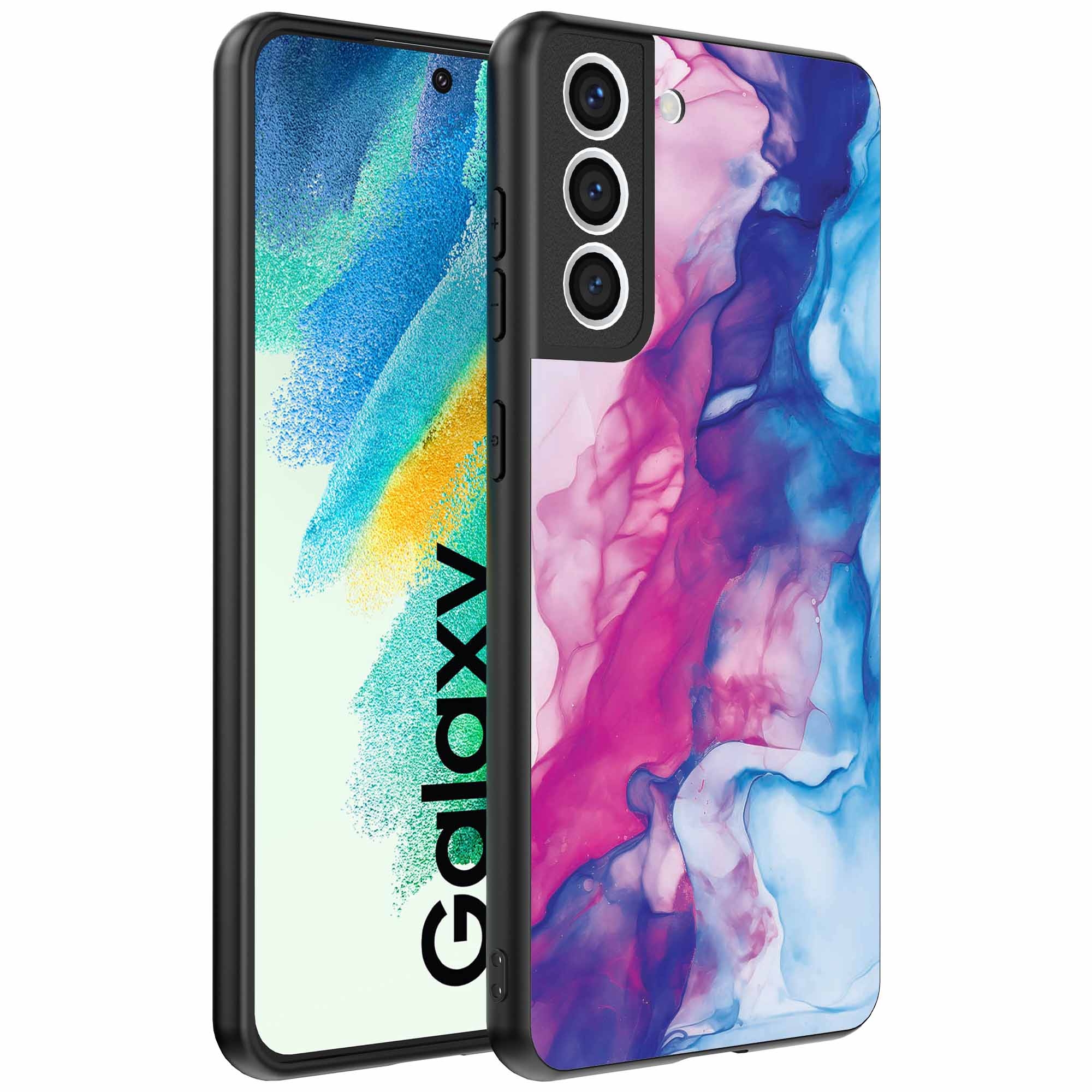 – 1x Samsung Galaxy S21 FE telefoonhoesje met roze blauw marmer design