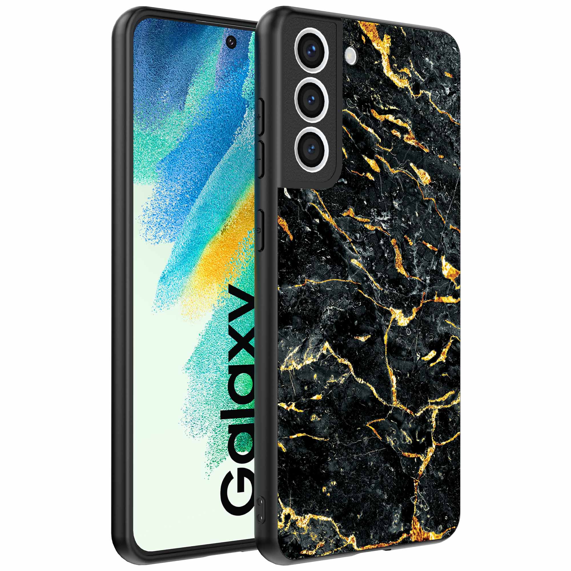 – 1x Samsung Galaxy S21 FE telefoonhoesje met Goud Zwart marmer design