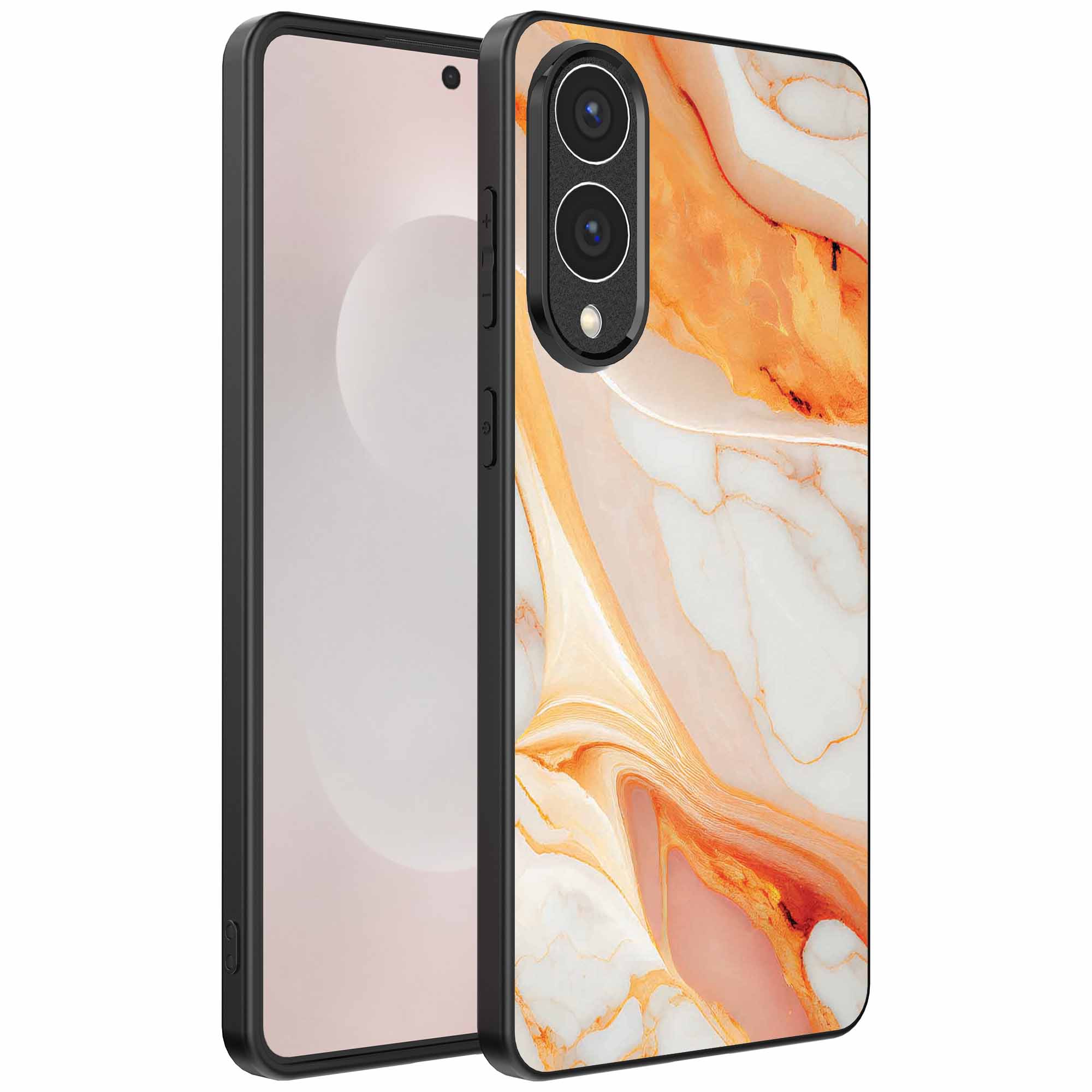 – 1x Samsung Galaxy S25 Edge telefoonhoesje met oranje marmer design