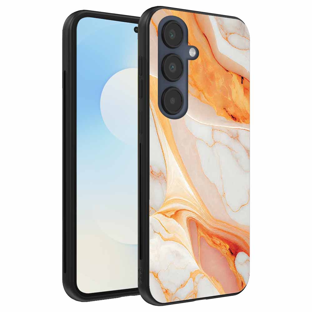 – 1x Samsung Galaxy S25 FE telefoonhoesje met oranje marmer design