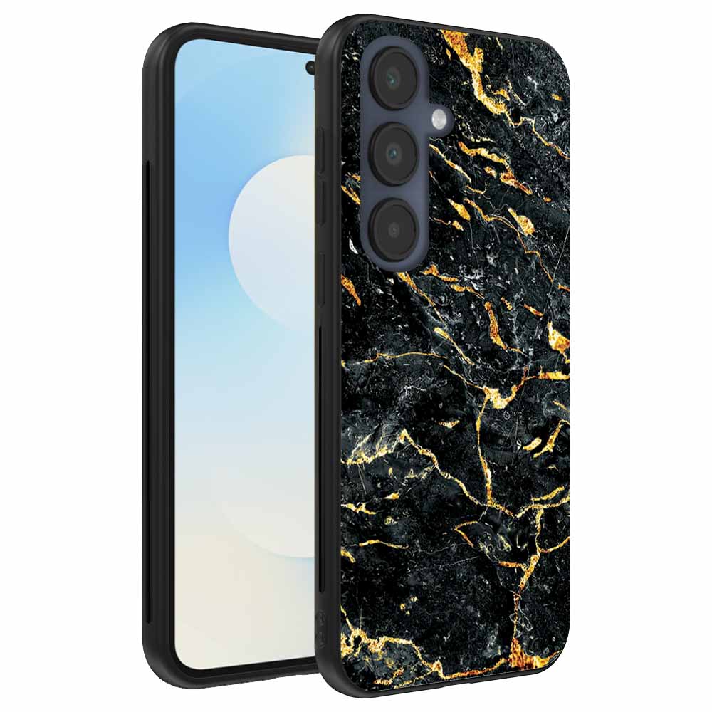 – 1x Samsung Galaxy S25 FE telefoonhoesje met Goud Zwart marmer design