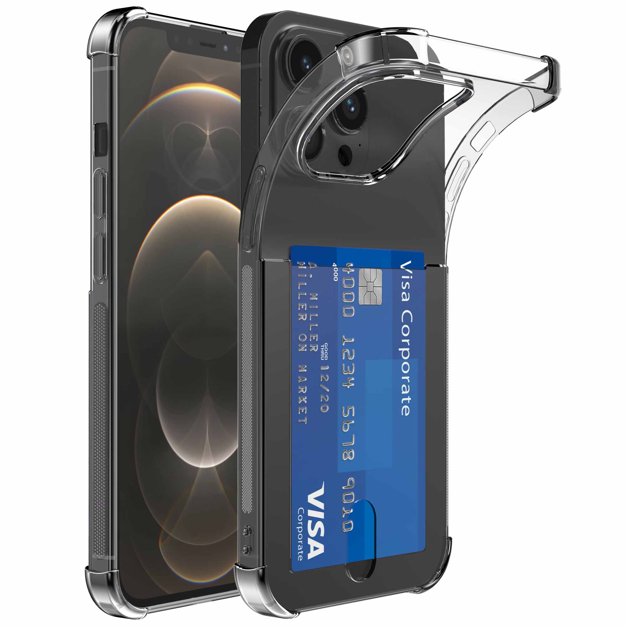 iPhone 12 Pro telefoonhoesje transparant met pasjeshouder en stootrand NewCity (4)