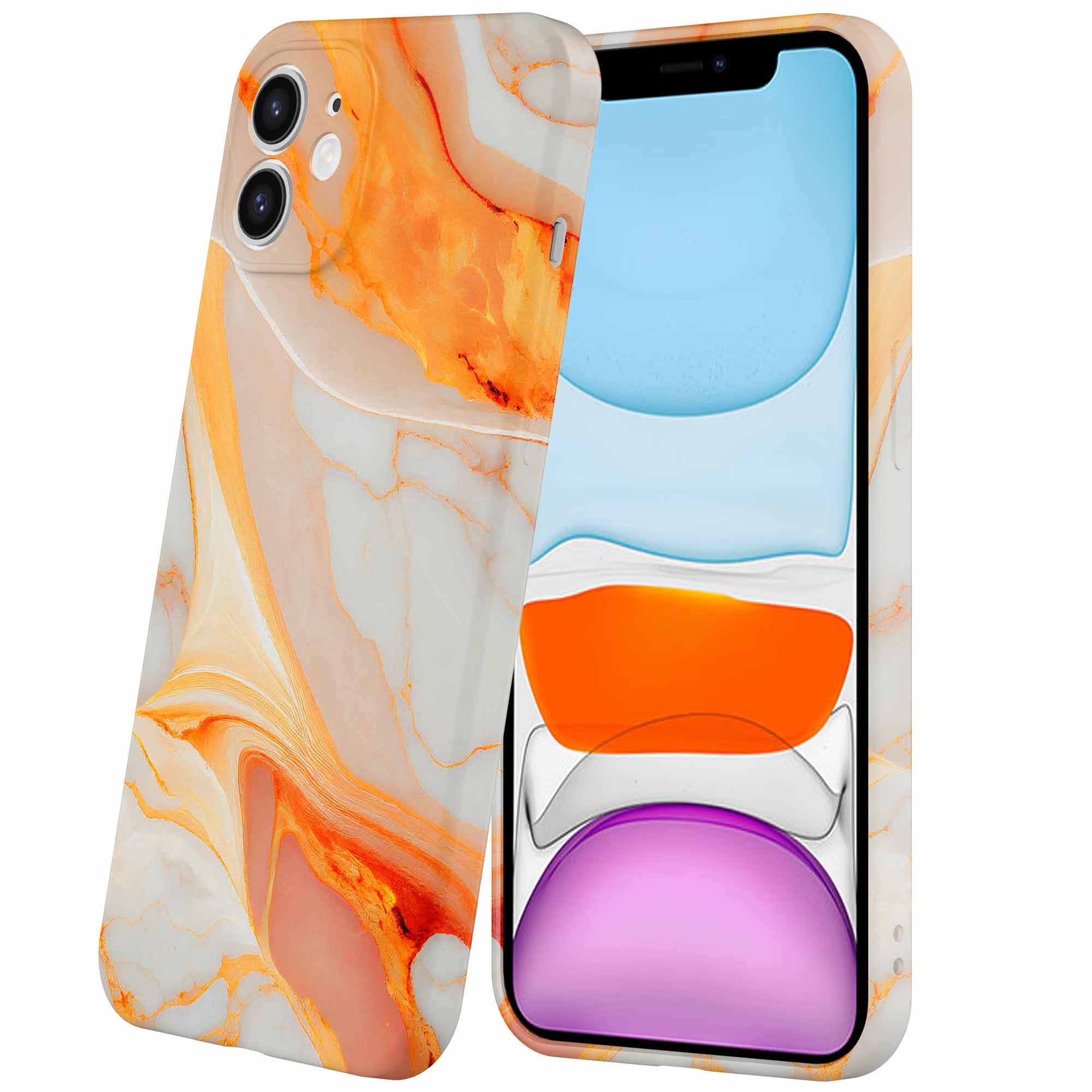 1x Telefoonhoesje geschikt voor iPhone 11 met oranje marmer opdruk