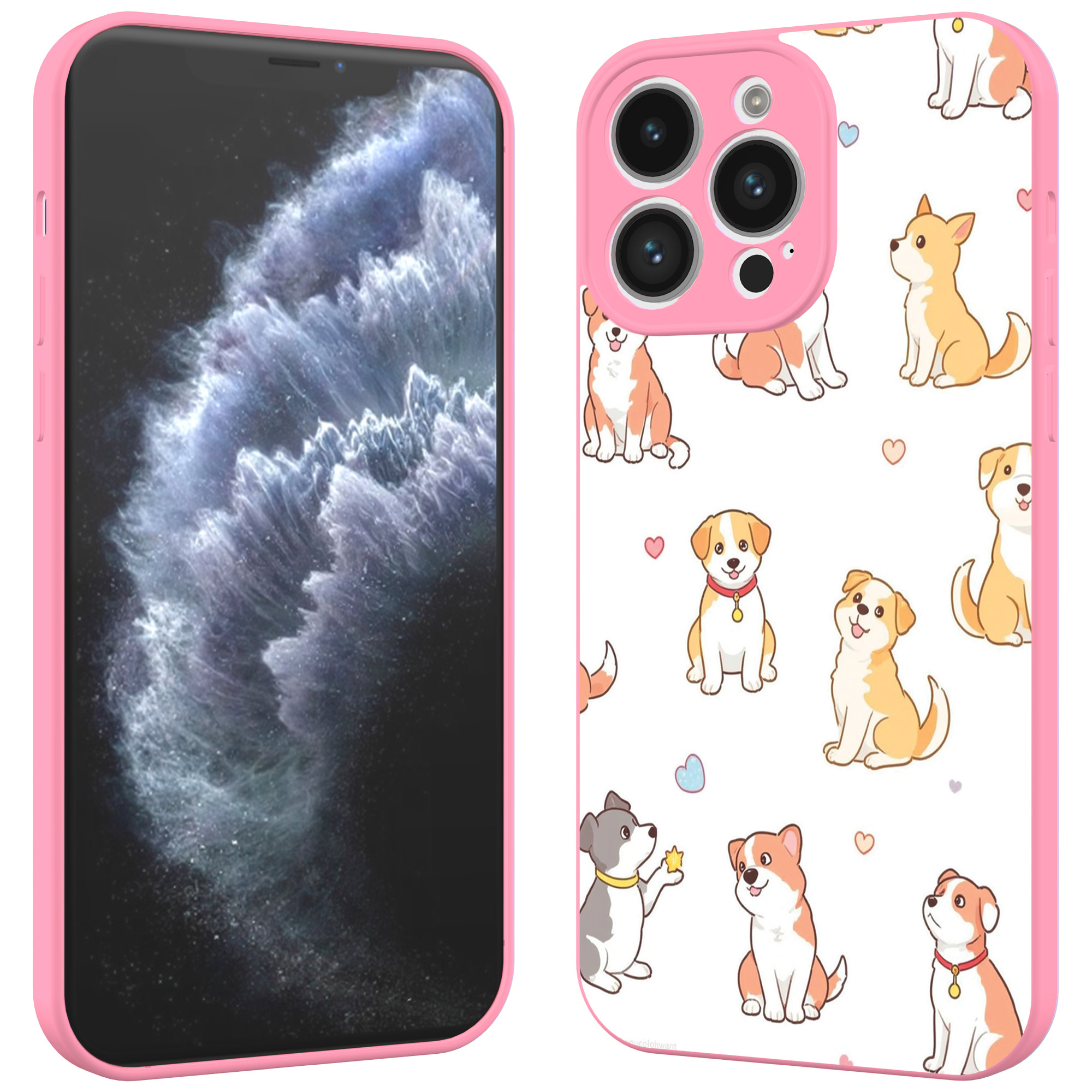 • 1x Geschikt voor iPhone 11 Pro Max telefoonhoesje met honden opdruk en roze rand