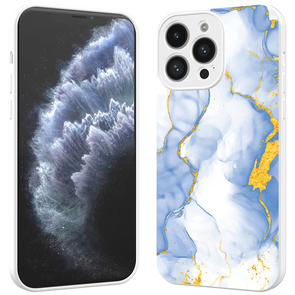 Bescherm je iPhone 11 Pro Max met het exclusieve telefoonhoesje van Smartphonica met lichtblauw gouden marmer opdruk. Dit hoesje springt direct in het oog dankzij het lichtblauw gouden marmer design en de contrasterende witte rand. De combinatie van kleuren zorgt voor een opvallende, elegante uitstraling. Dit hoesje is niet alleen stijlvol, maar ook ontworpen voor maximale bescherming tegen alledaagse gevaren.