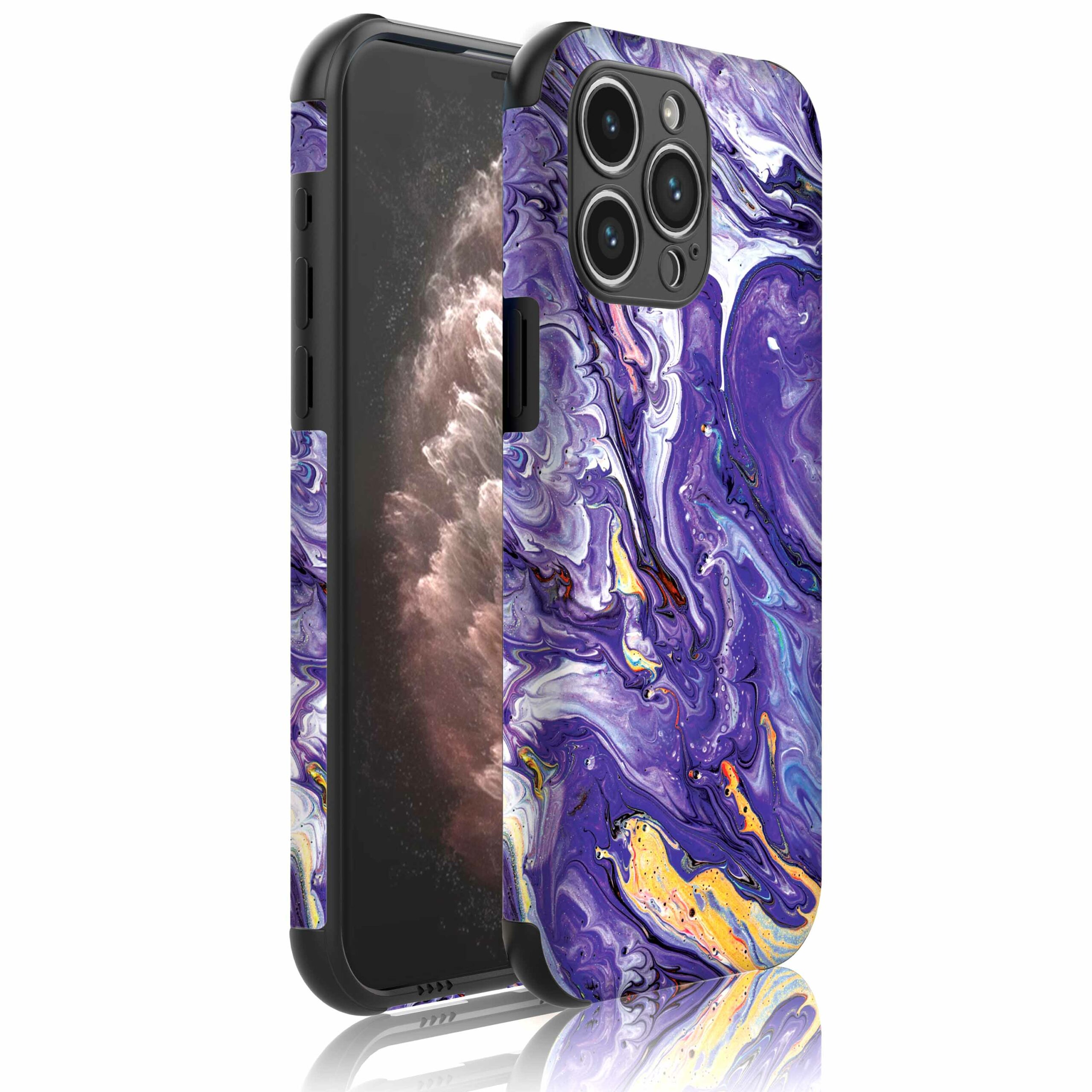 1x Telefoonhoesje geschikt voor iPhone 11 Pro Max met goud paars marmer opdruk
