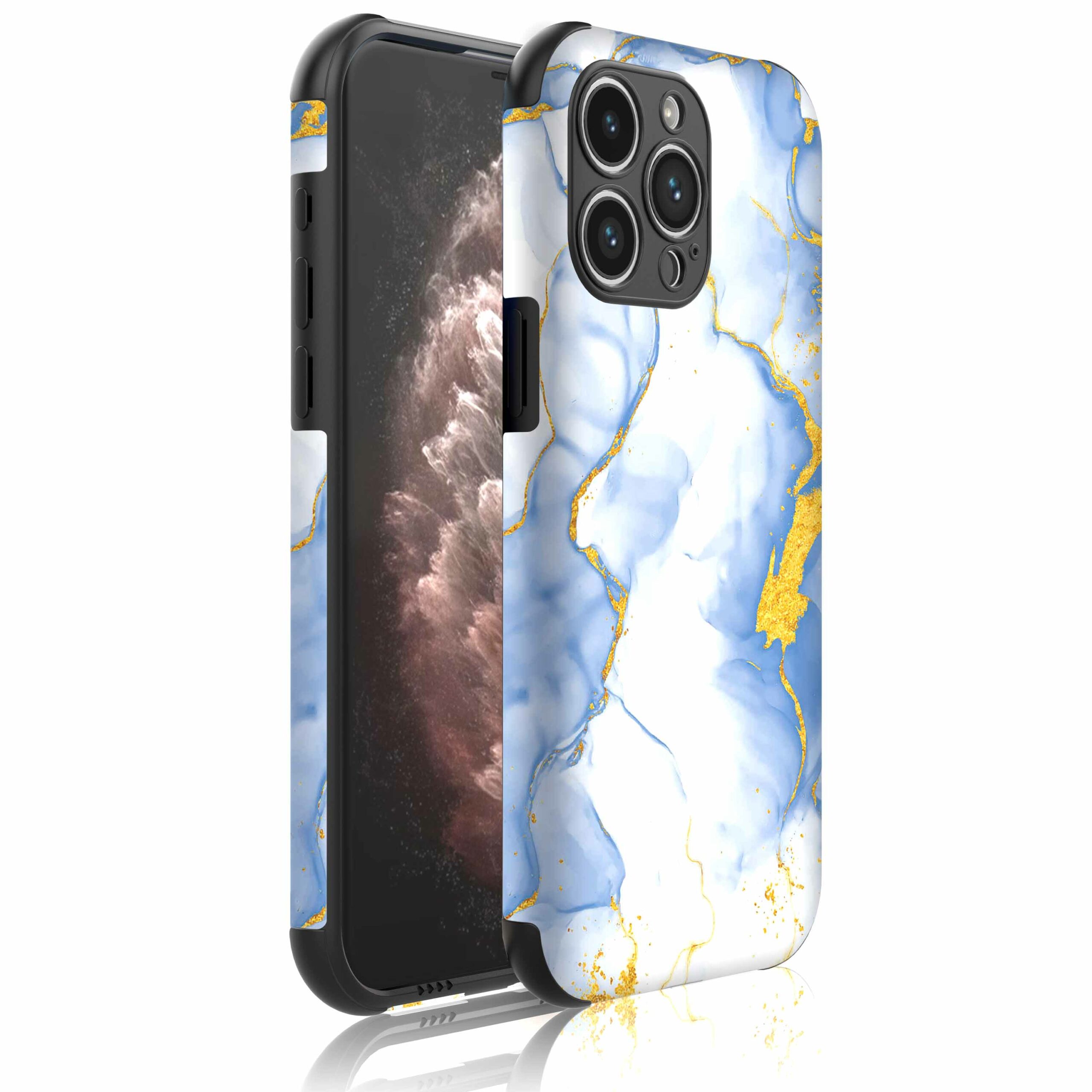1x Telefoonhoesje geschikt voor iPhone 11 Pro Max met lichtblauw goud marmer opdruk