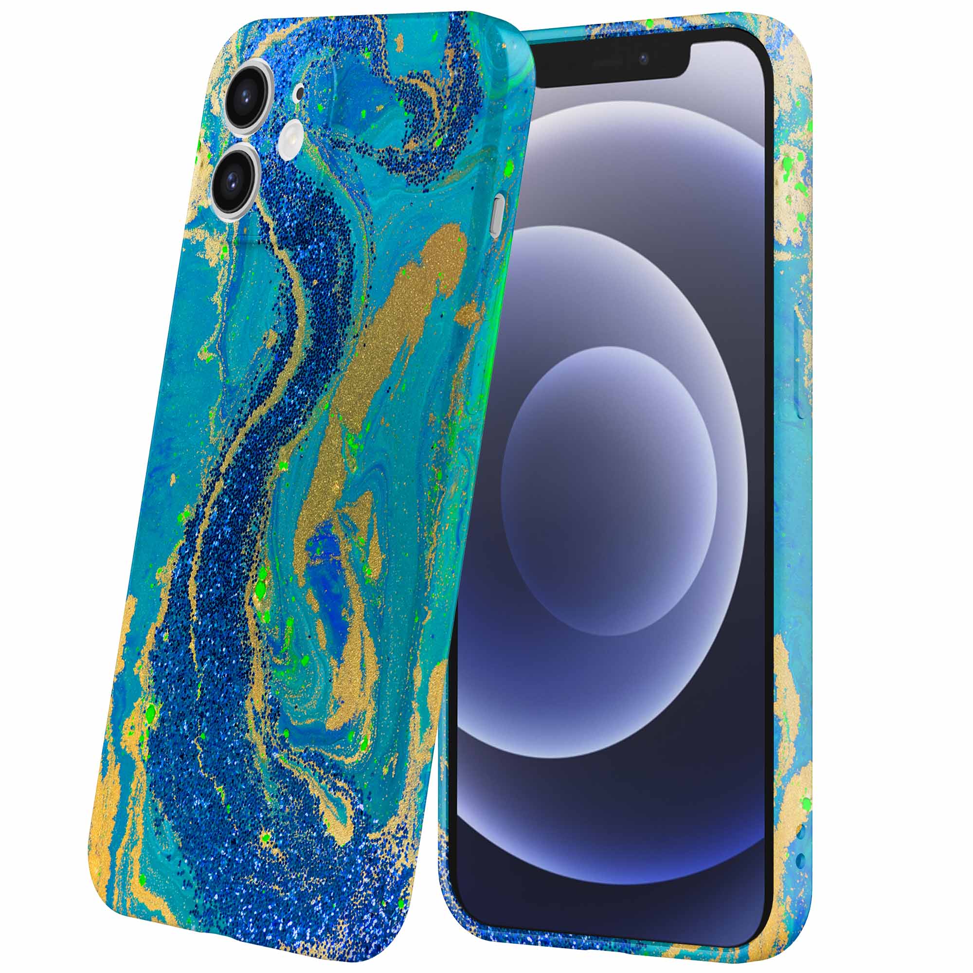 1x Telefoonhoesje geschikt voor iPhone 12 met blauw groen goud marmer opdruk