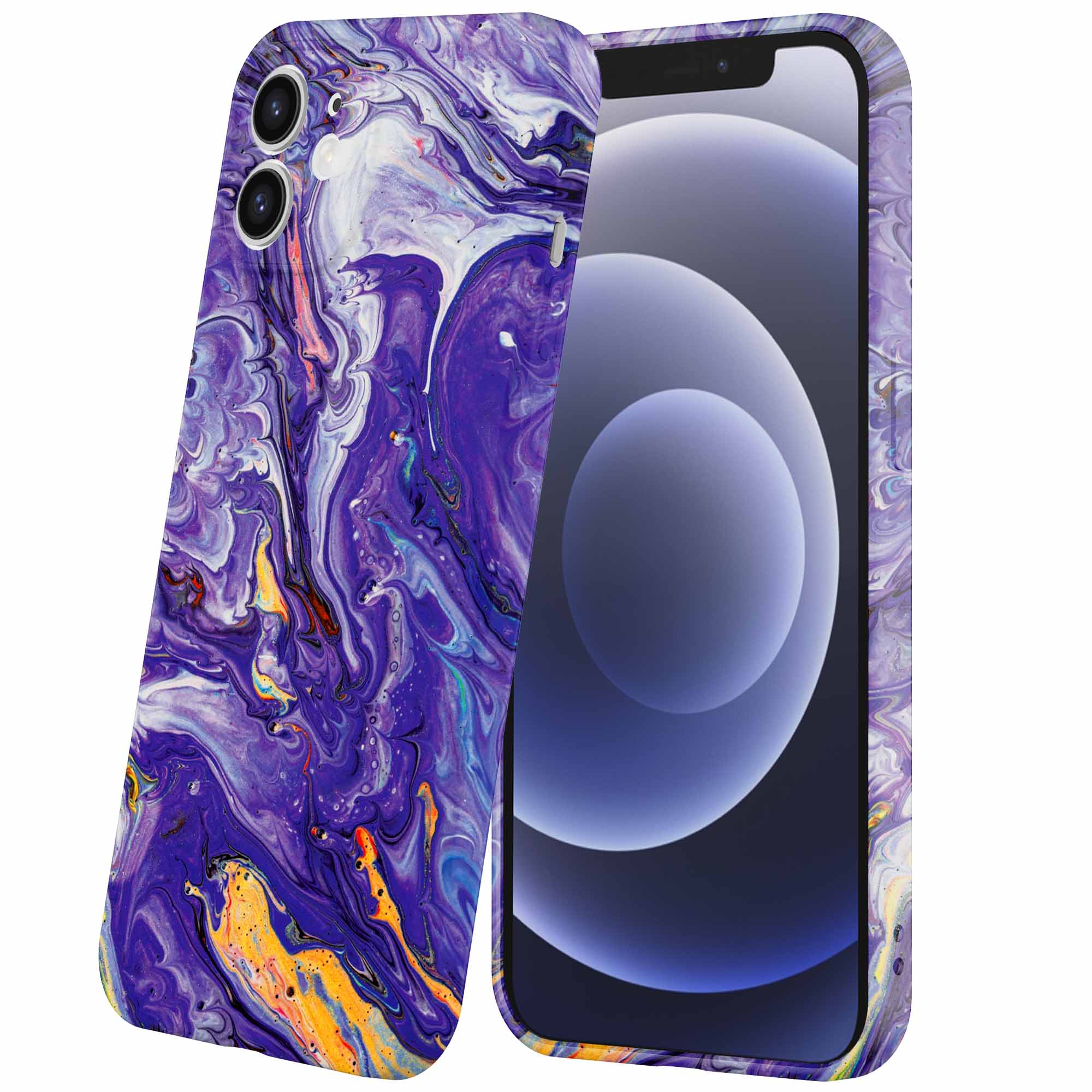1x Telefoonhoesje geschikt voor iPhone 12 met paars goud marmer opdruk