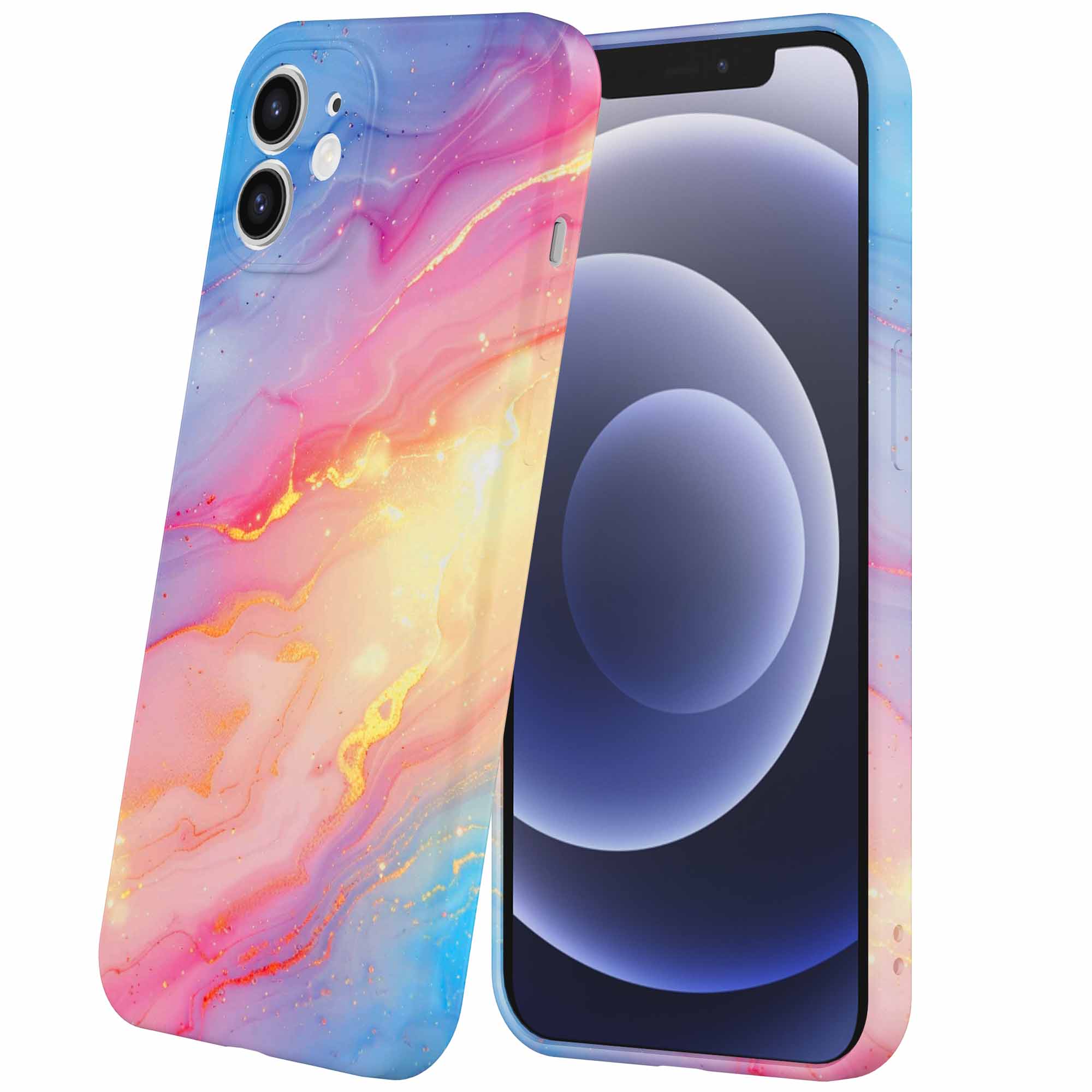 1x Telefoonhoesje geschikt voor iPhone 12 met regenboog glitter marmer opdruk