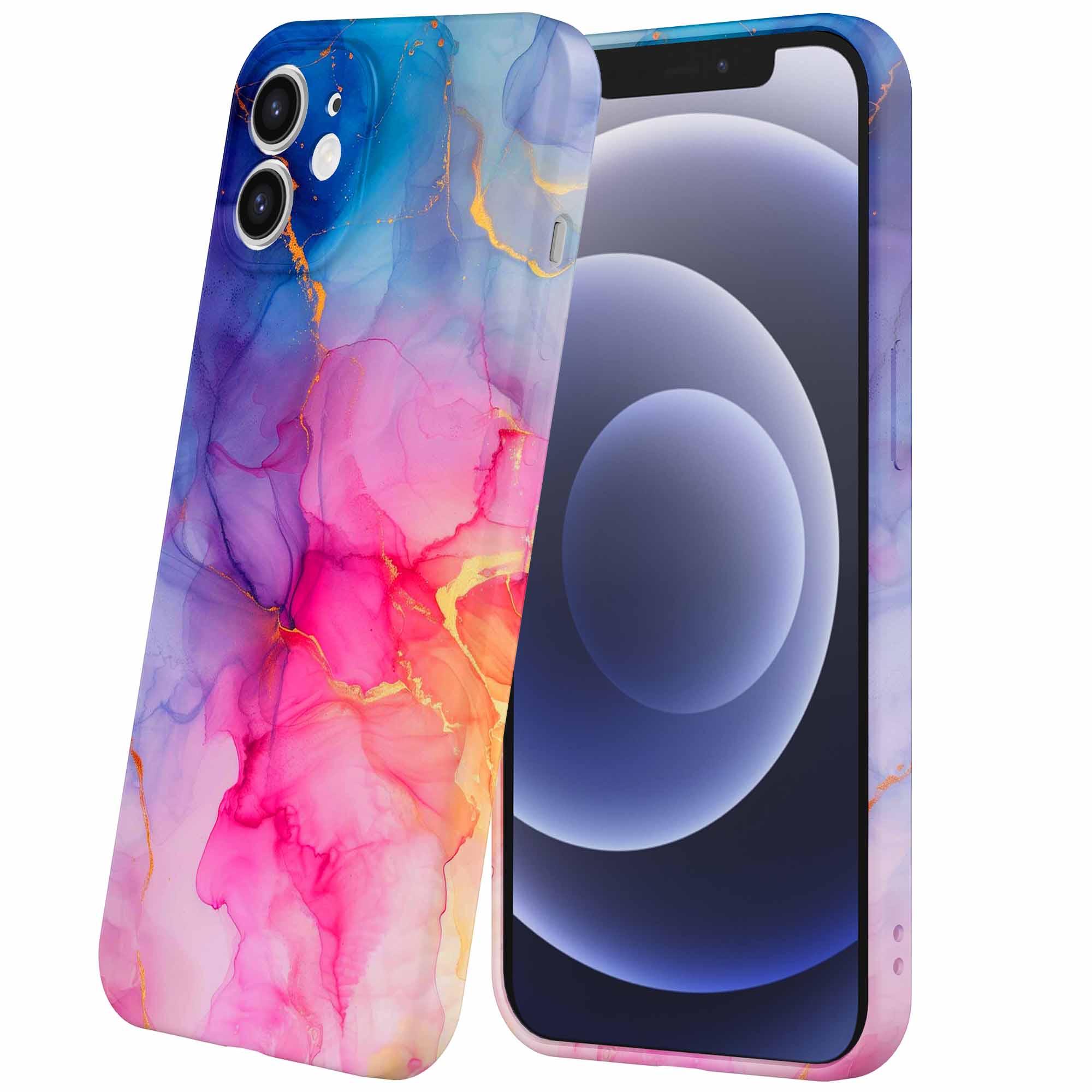 1x Telefoonhoesje geschikt voor iPhone 12 met regenboog marmer opdruk