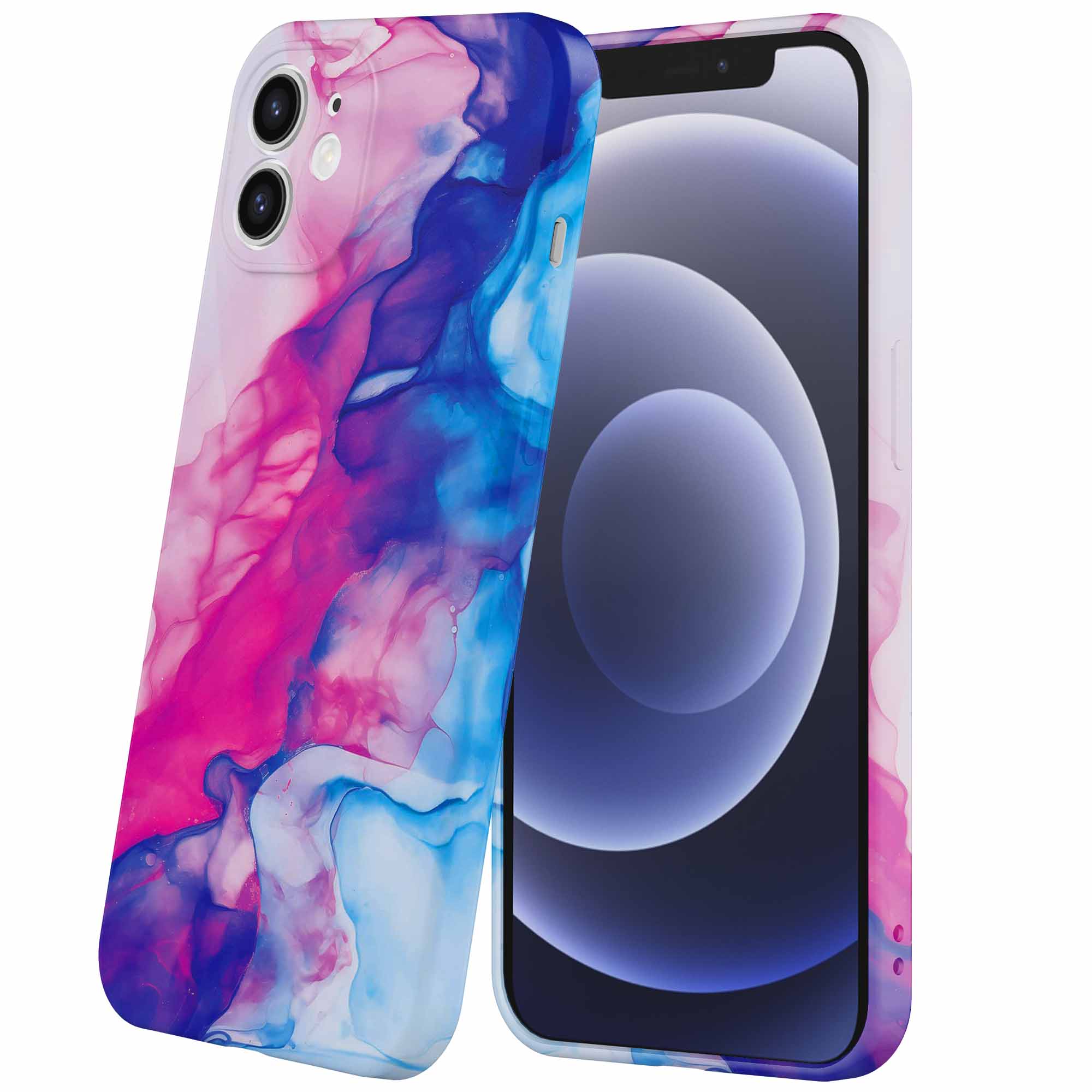 1x Telefoonhoesje geschikt voor iPhone 12 met roze blauw marmer opdruk