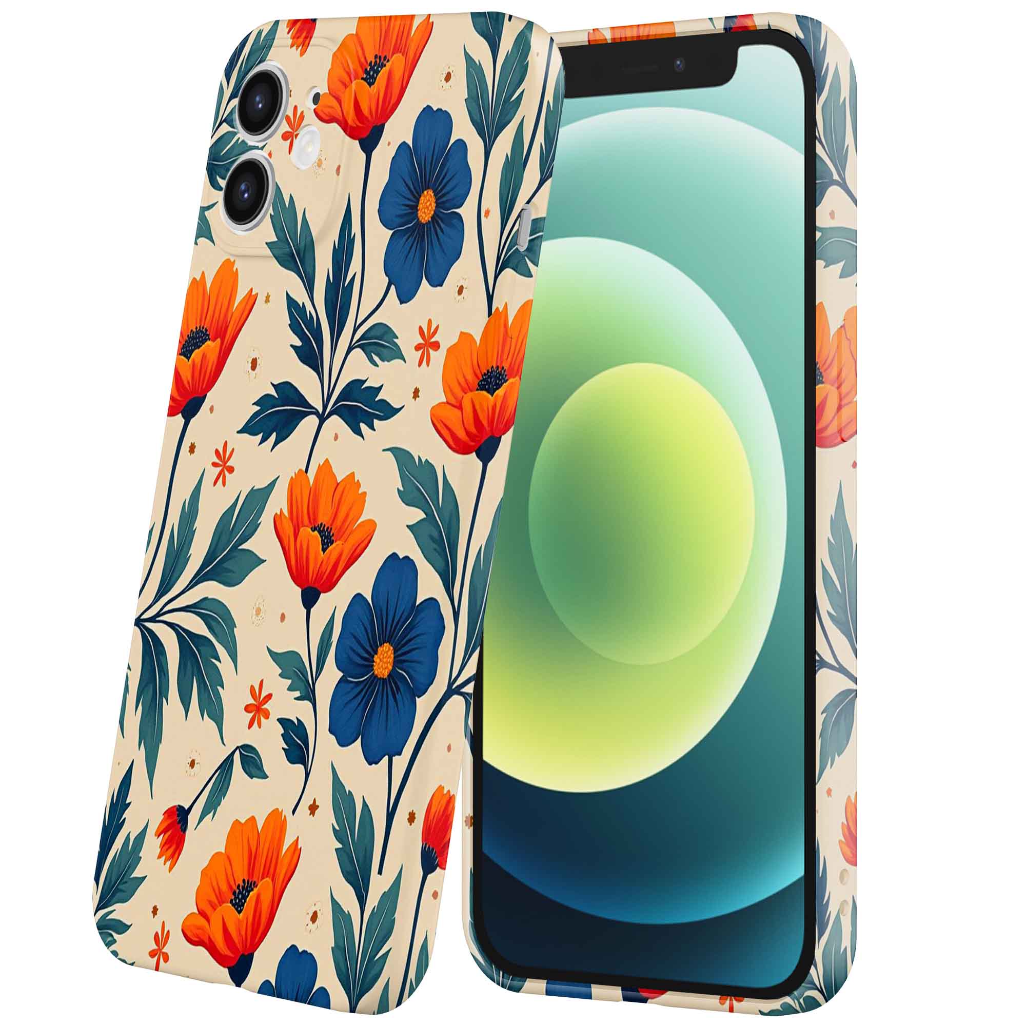 1x Telefoonhoesje geschikt voor iPhone 12 Mini met oranje en blauwe bloemen opdruk