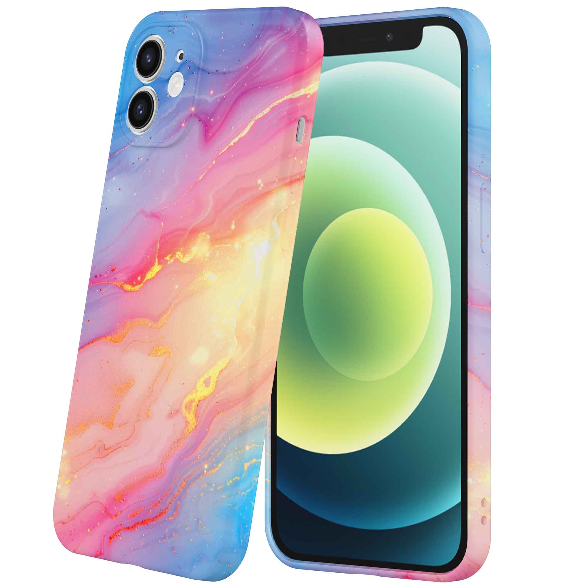 1x Telefoonhoesje geschikt voor iPhone 12 Mini met regenboog glitter marmer opdruk