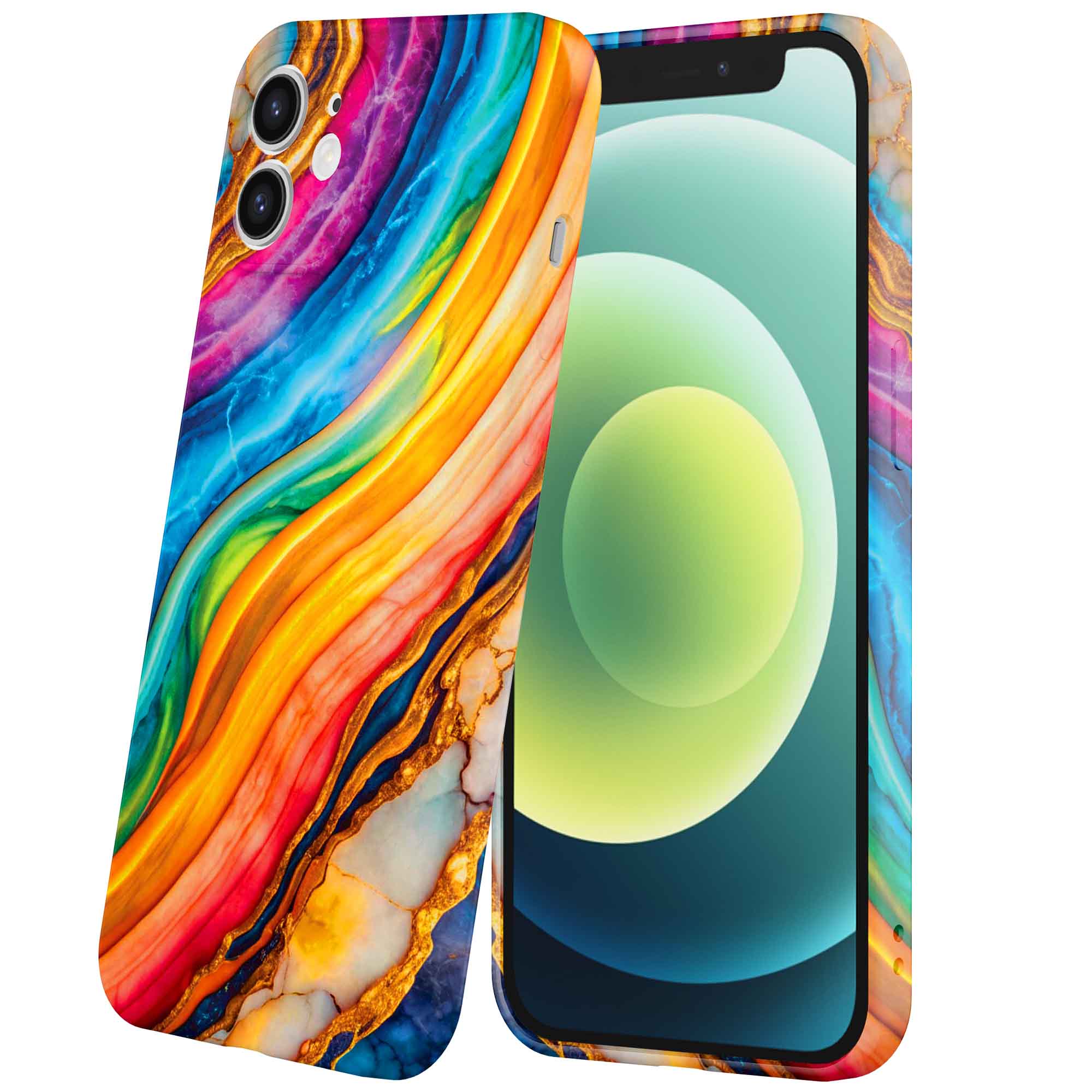 1x Telefoonhoesje geschikt voor iPhone 12 Mini met regenboog goud marmer opdruk