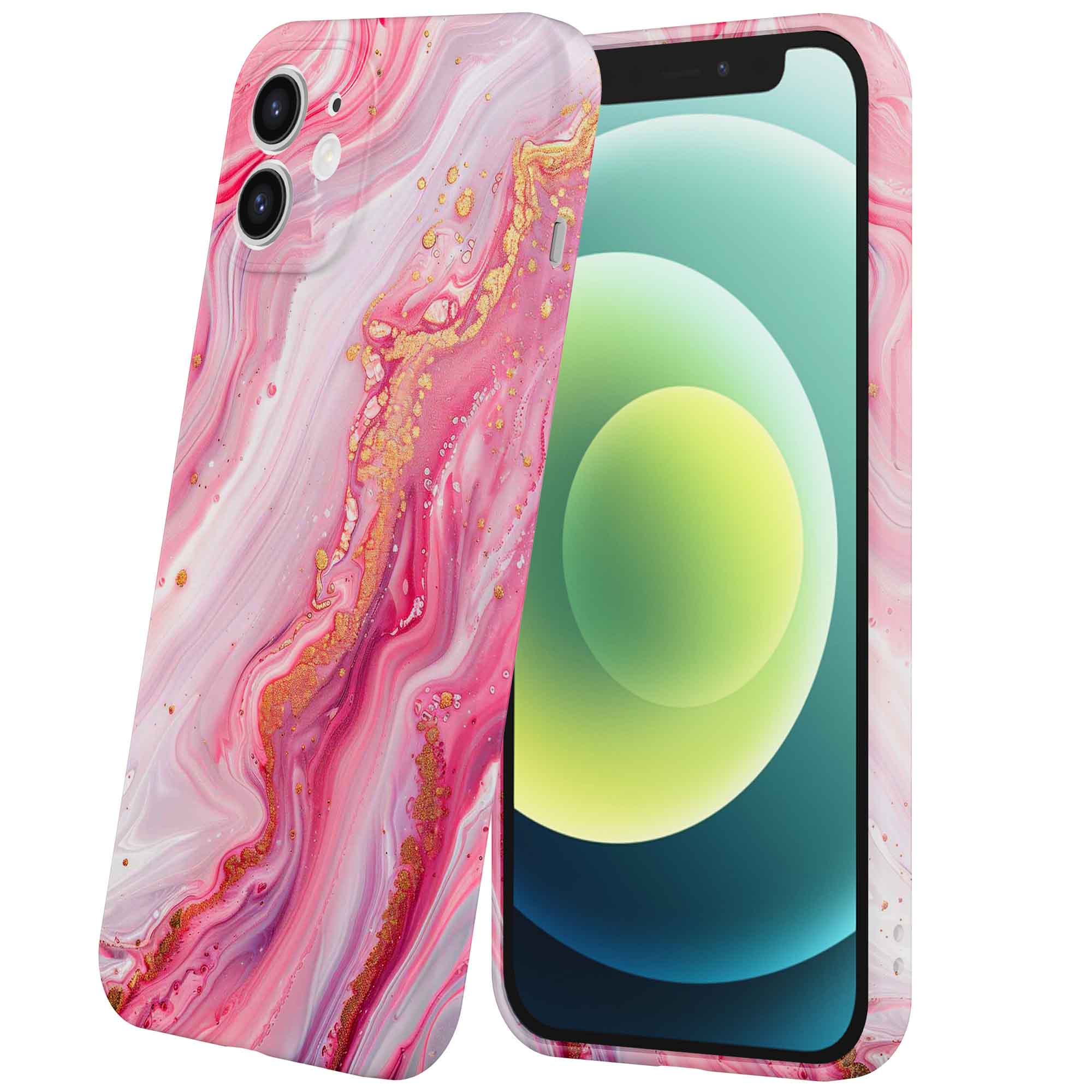 1x Telefoonhoesje geschikt voor iPhone 12 Mini met rosé goud marmer opdruk