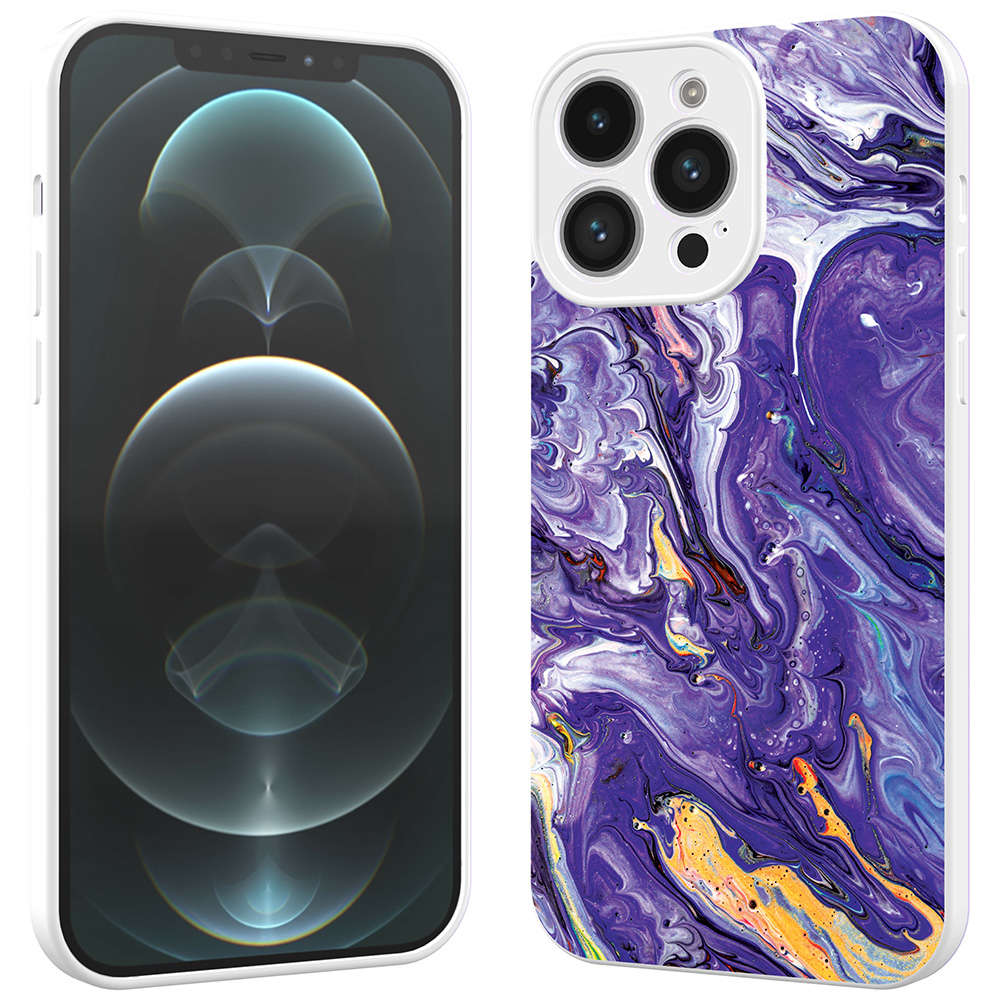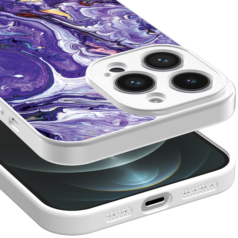 Bescherm je iPhone 12 Pro Max met het exclusieve telefoonhoesje van Smartphonica met goud paarse marmer opdruk. Dit hoesje springt direct in het oog dankzij het goud paarse marmer design en de contrasterende witte rand. De combinatie van kleuren zorgt voor een opvallende, elegante uitstraling. Dit hoesje is niet alleen stijlvol, maar ook ontworpen voor maximale bescherming tegen alledaagse gevaren.