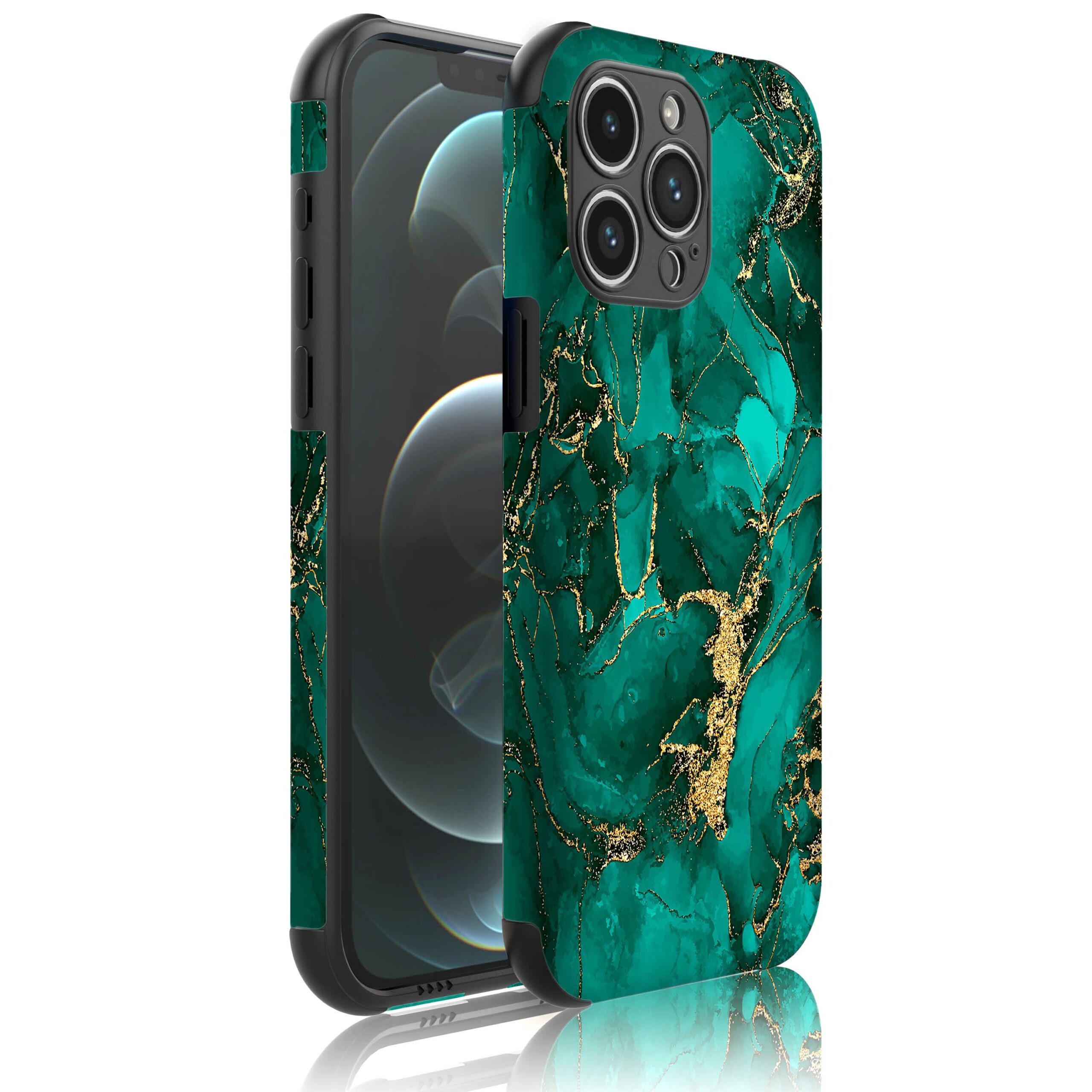 1x Telefoonhoesje geschikt voor iPhone 12 Pro Max met groen goud marmer opdruk