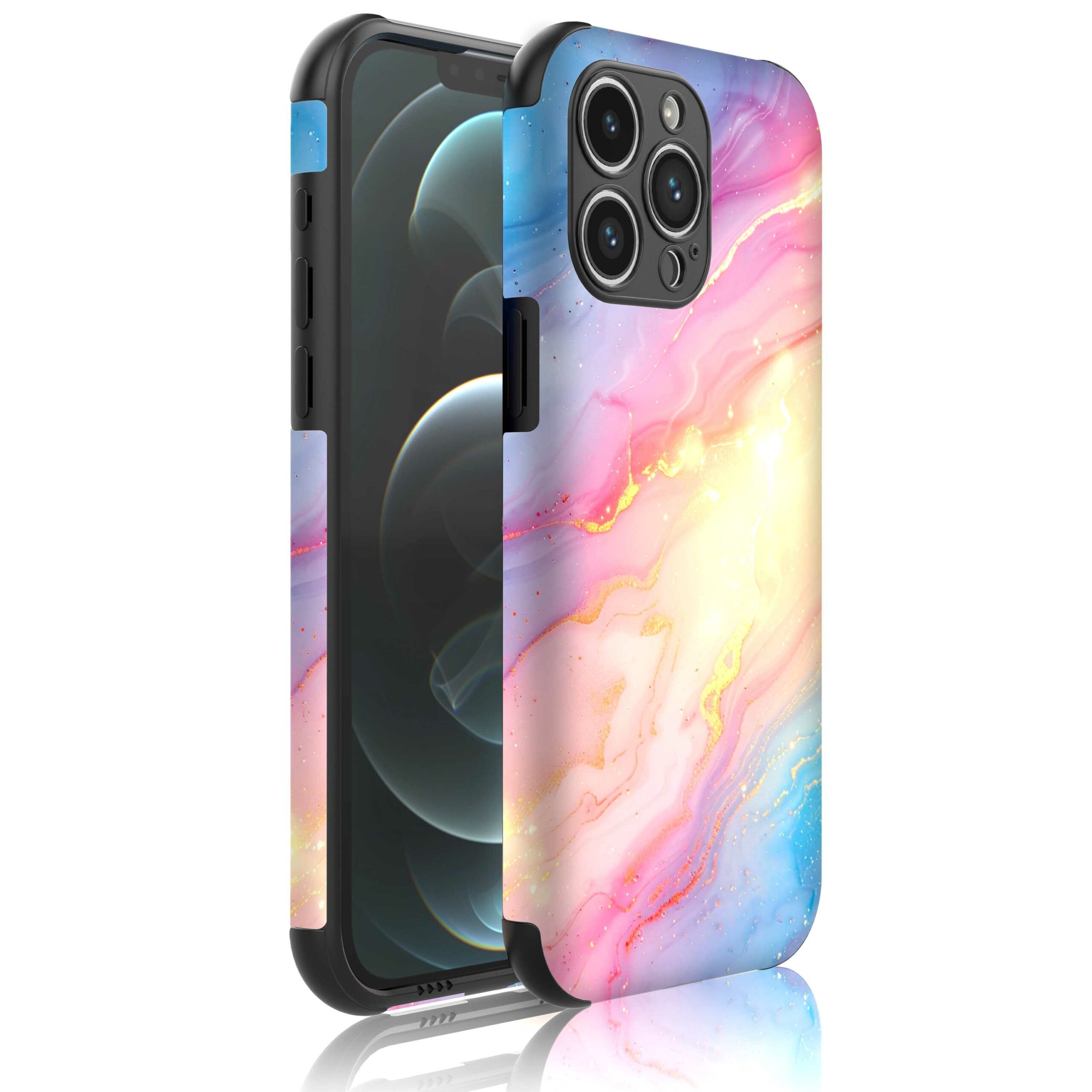 1x Telefoonhoesje geschikt voor iPhone 12 Pro Max met regenboog glitter marmer opdruk