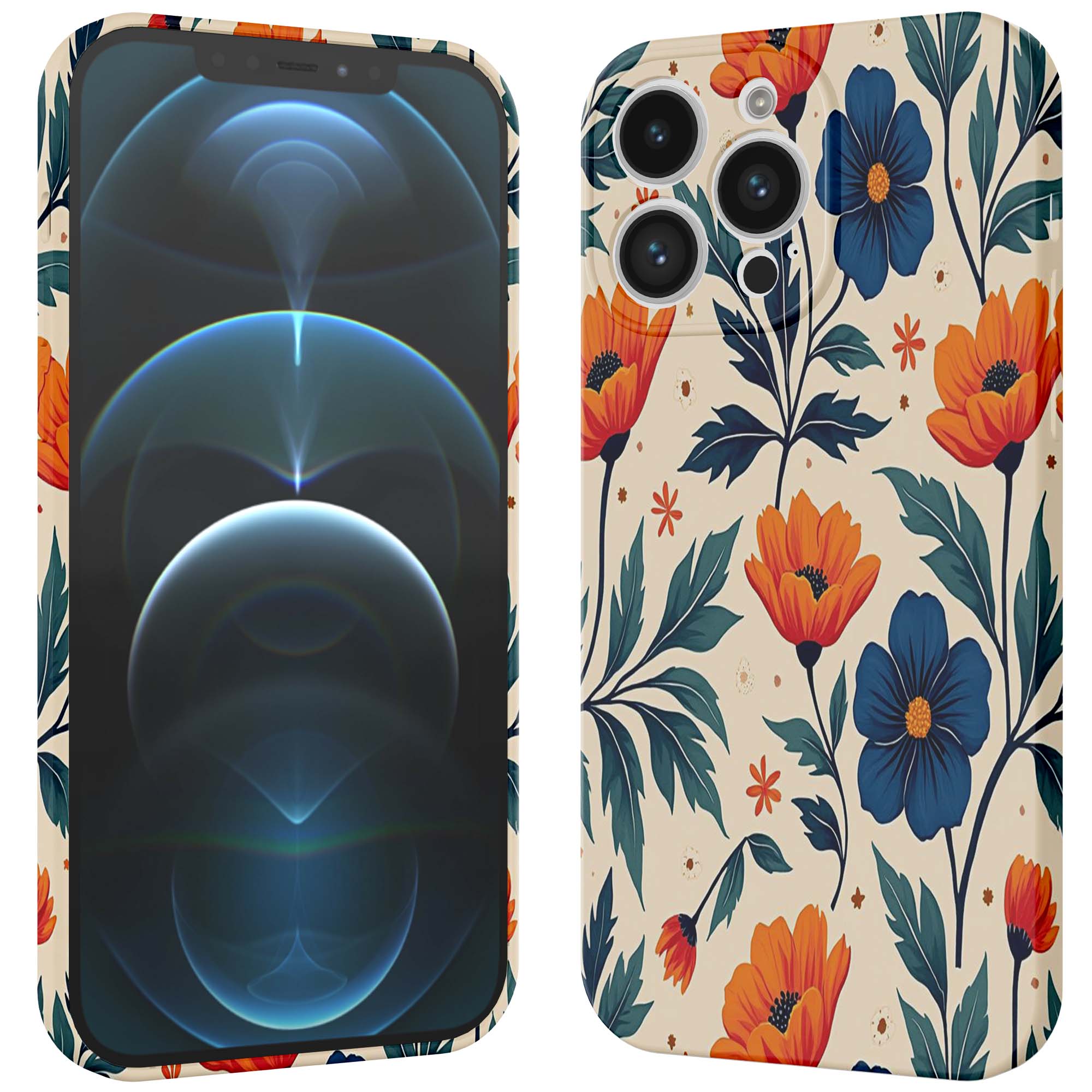 1x Telefoonhoesje geschikt voor iPhone 12 Pro met oranje en blauwe bloemen opdruk