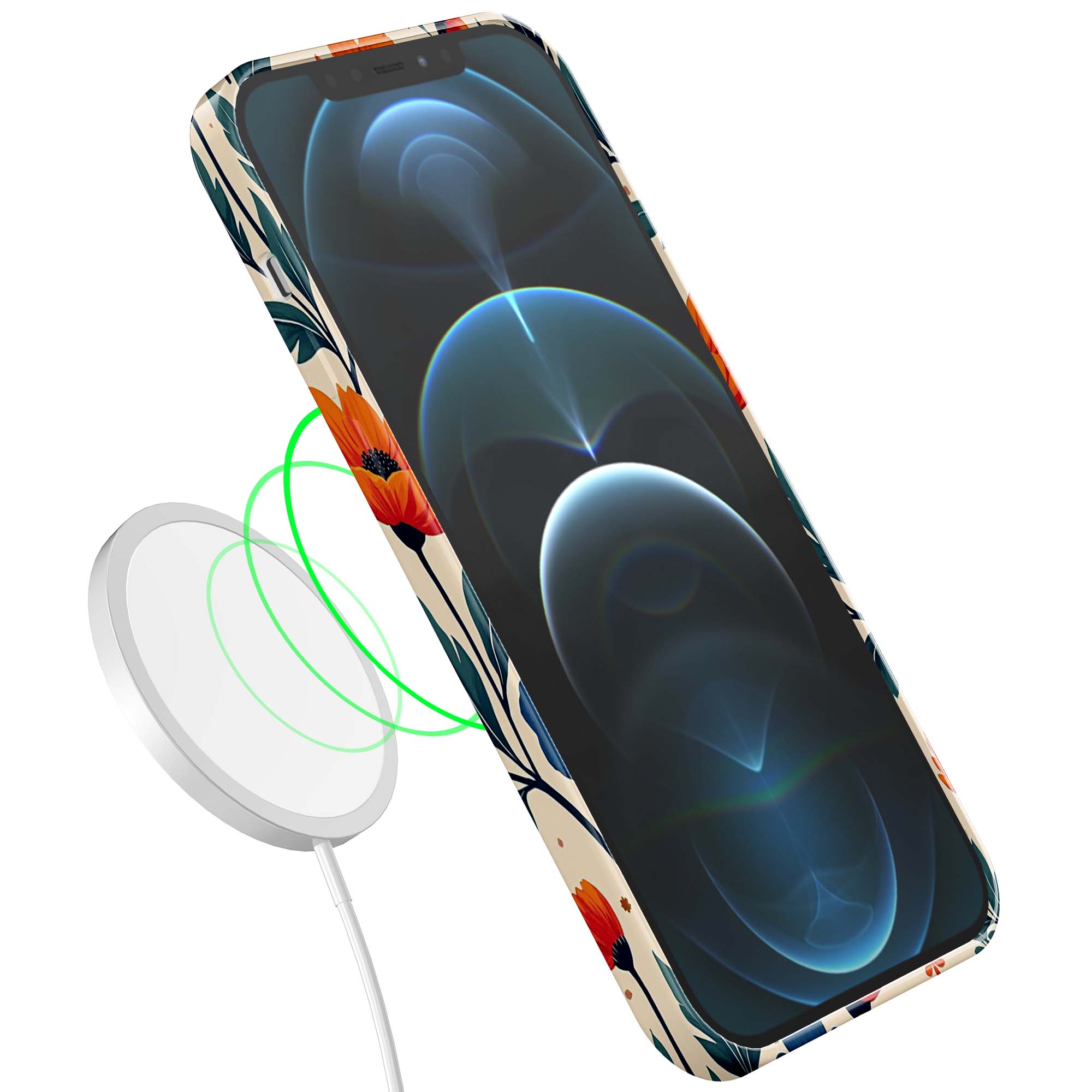 Dit iPhone 12 Pro telefoonhoesje is niet alleen een mode-item, maar biedt ook de bescherming die je verwacht van een premium accessoire. Dankzij de duurzame TPU materialen blijft je toestel beschermd tegen stoten, krassen en valpartijen. En het mooiste? Je hoeft je telefoon niet uit het hoesje te halen om draadloos op te laden, handig én modern. Laat je persoonlijkheid zien met een oranje en blauwe bloemen design dat klasse uitstraalt en tegelijkertijd je telefoon veilig houdt.