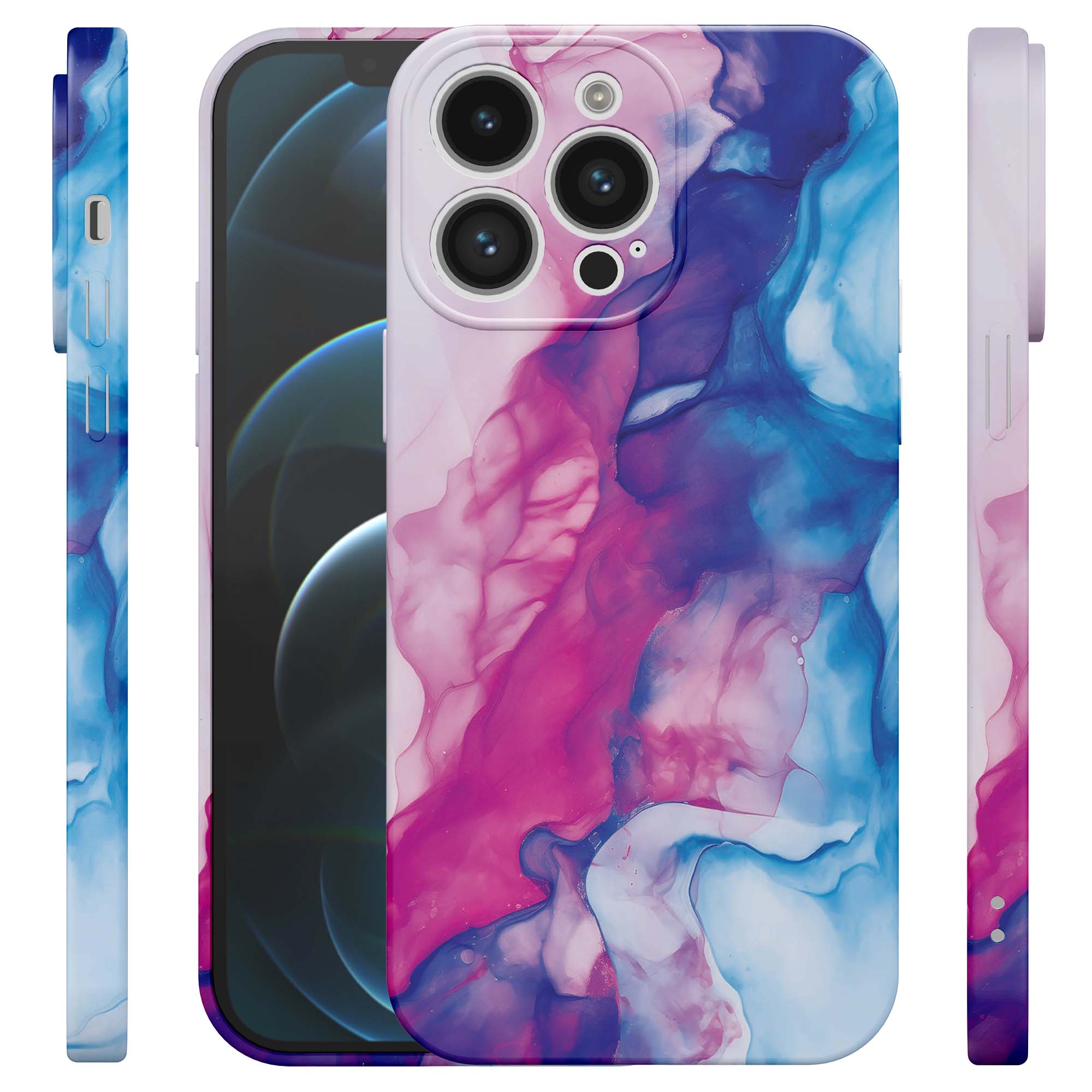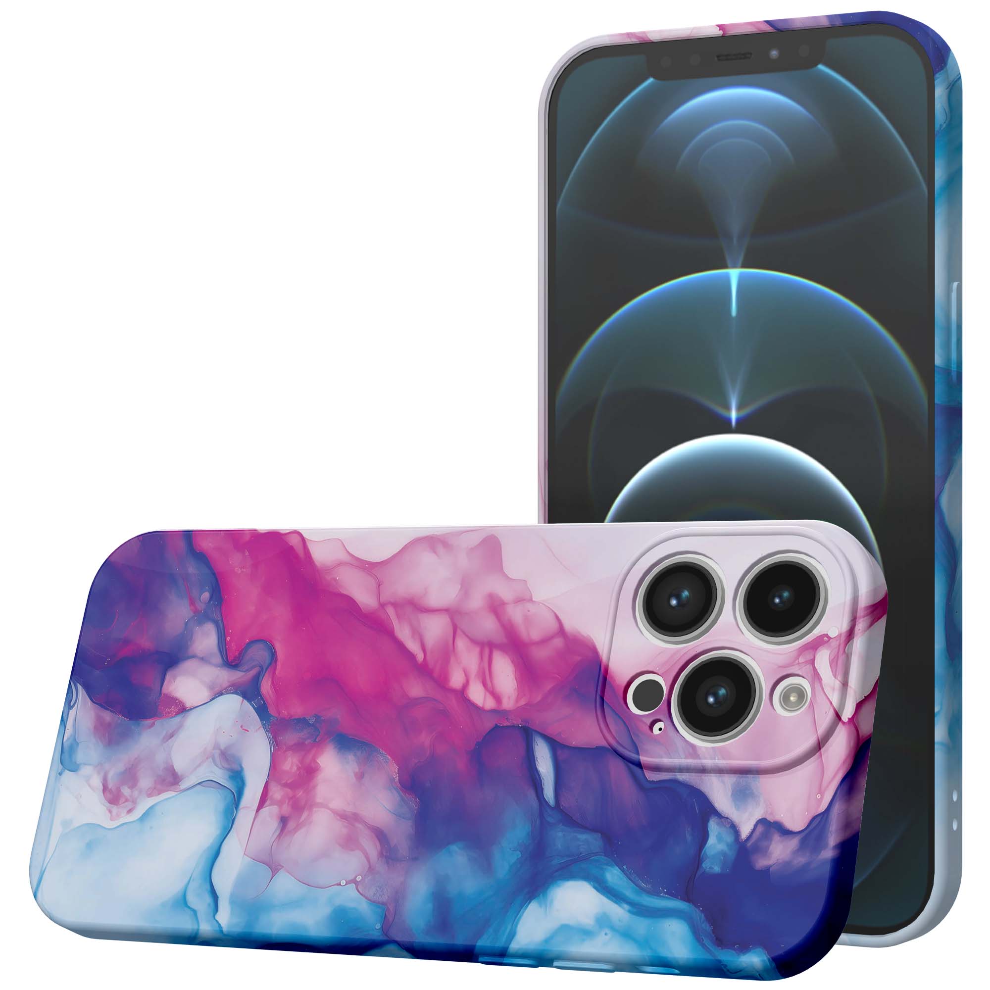 1x Telefoonhoesje geschikt voor iPhone 12 Pro met roze blauw marmer opdruk