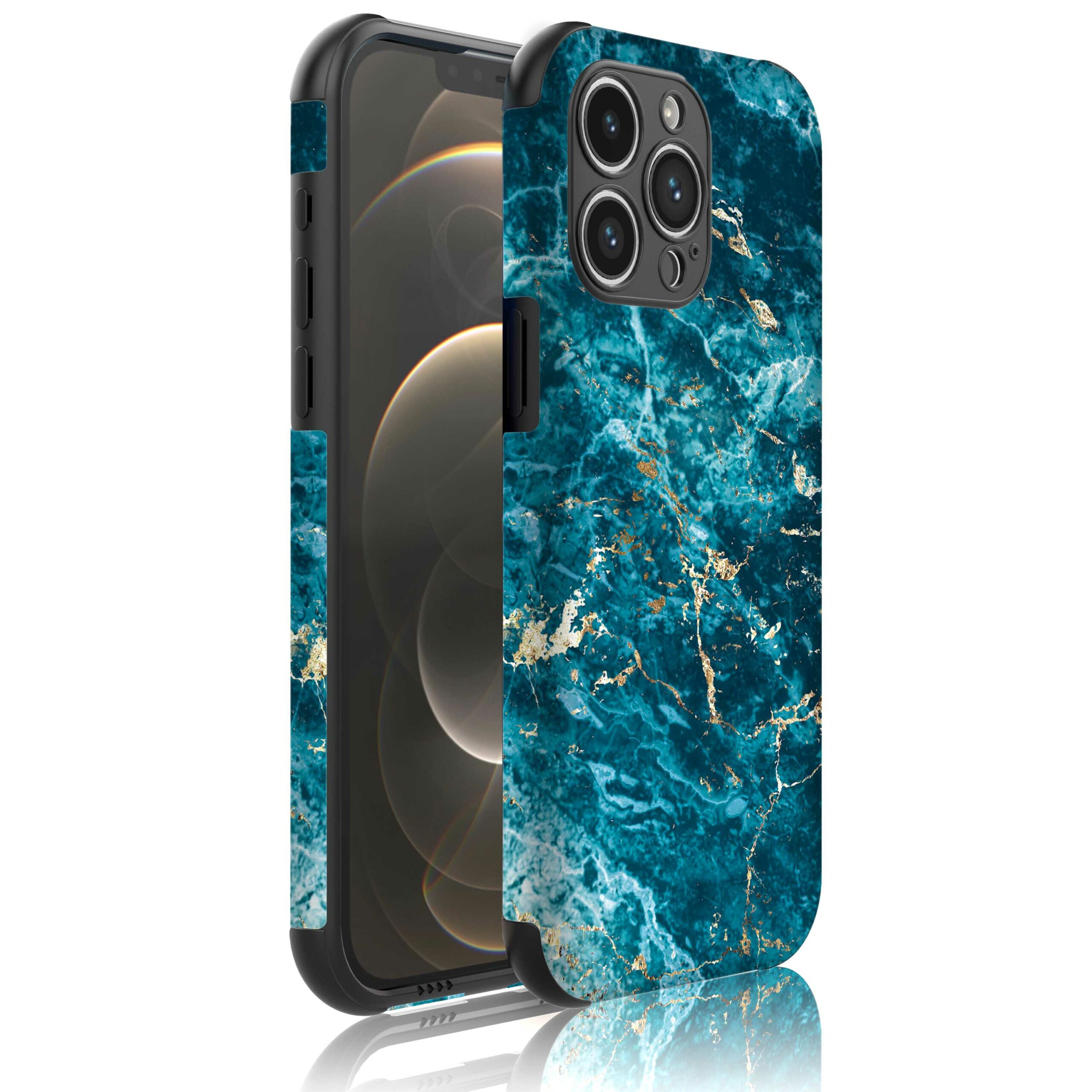 1x Telefoonhoesje geschikt voor iPhone 12 Pro met goud blauw marmer opdruk