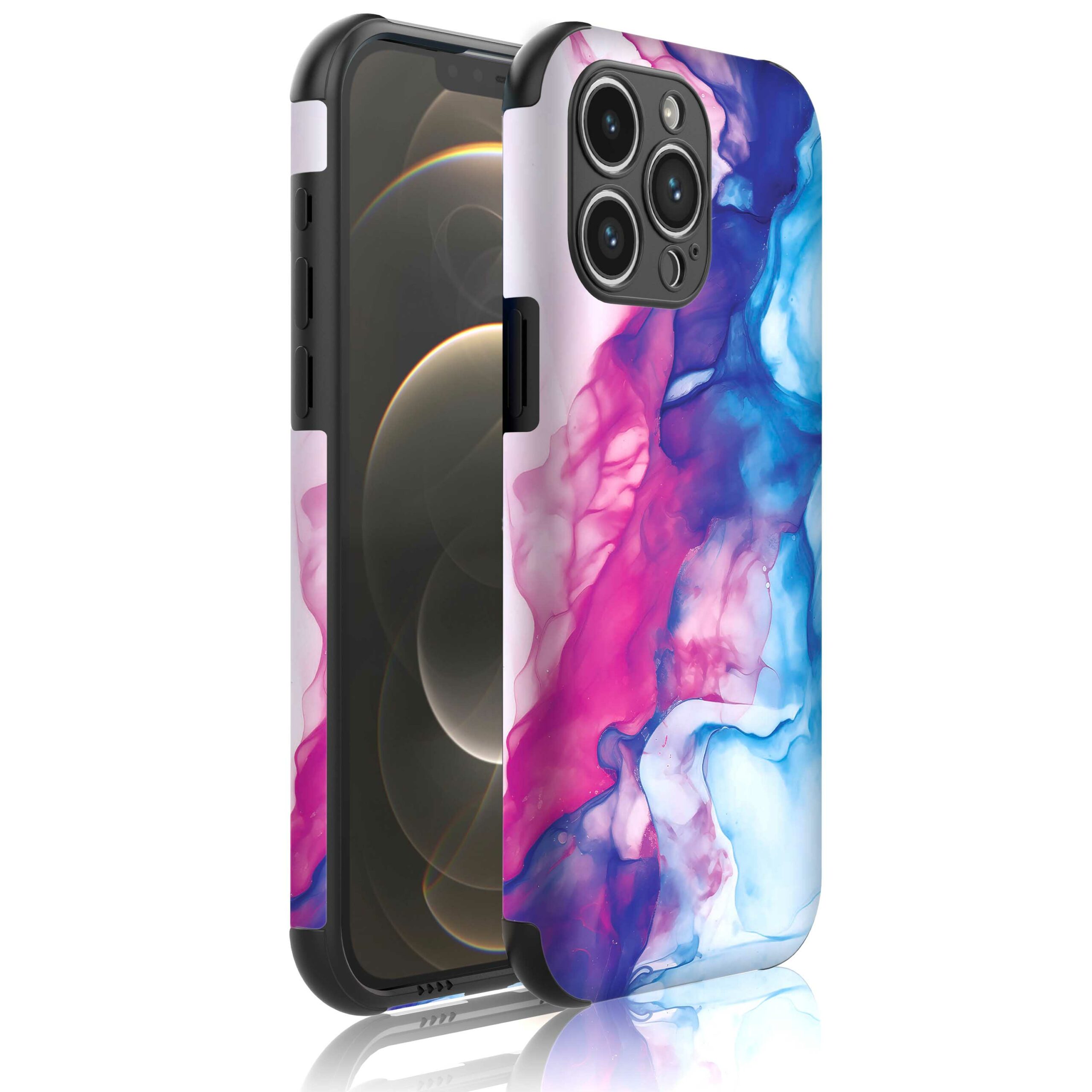 1x Telefoonhoesje geschikt voor iPhone 12 Pro met roze blauw marmer opdruk