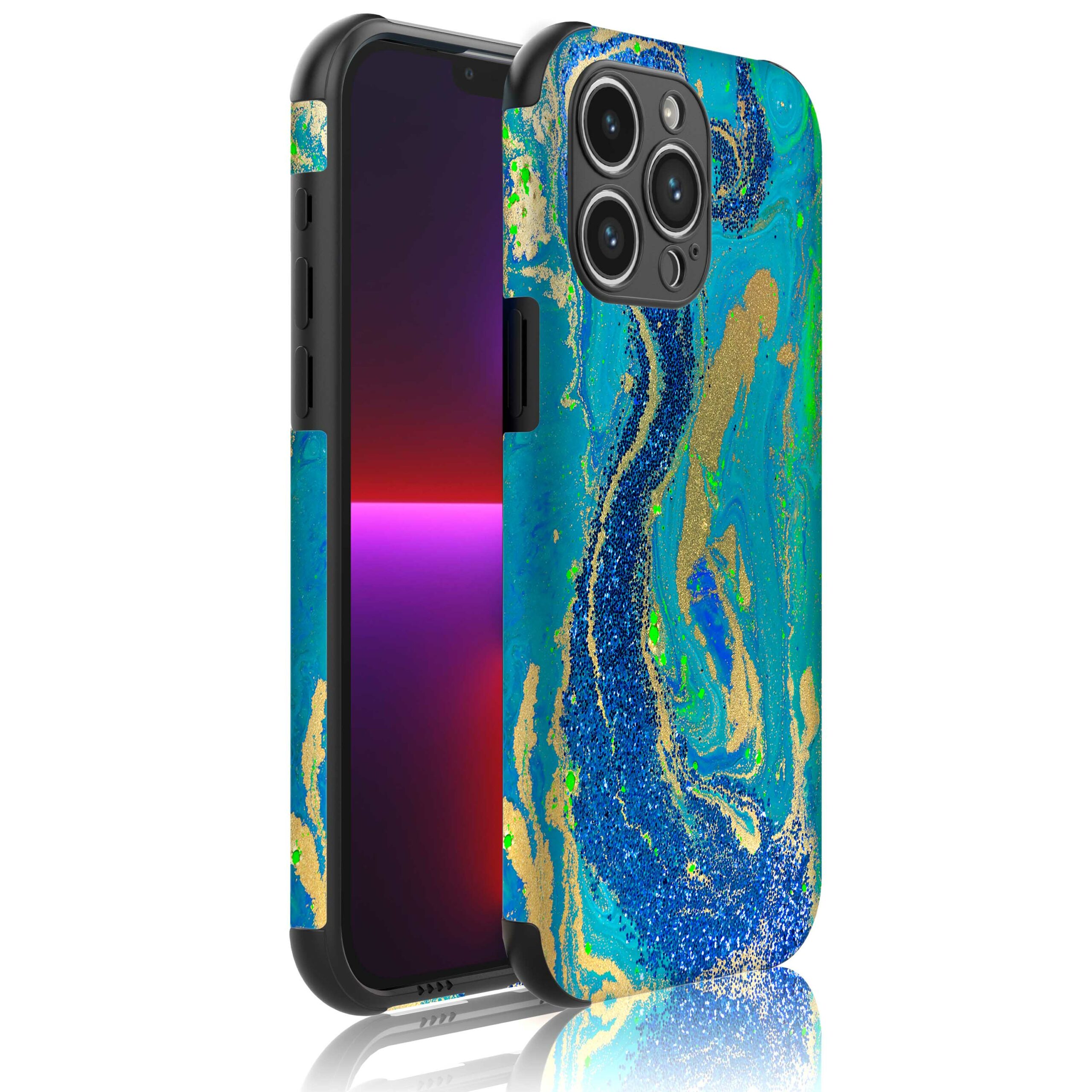 1x Telefoonhoesje geschikt voor iPhone 13 Pro Max met blauw groen goud marmer opdruk