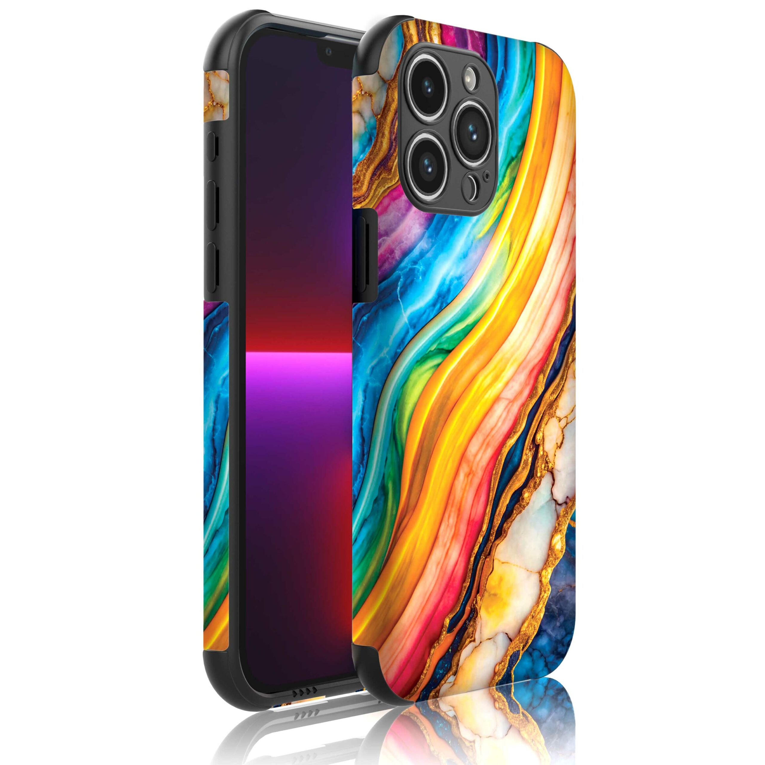 1x Telefoonhoesje geschikt voor iPhone 13 Pro Max met gouden regenboog marmer opdruk