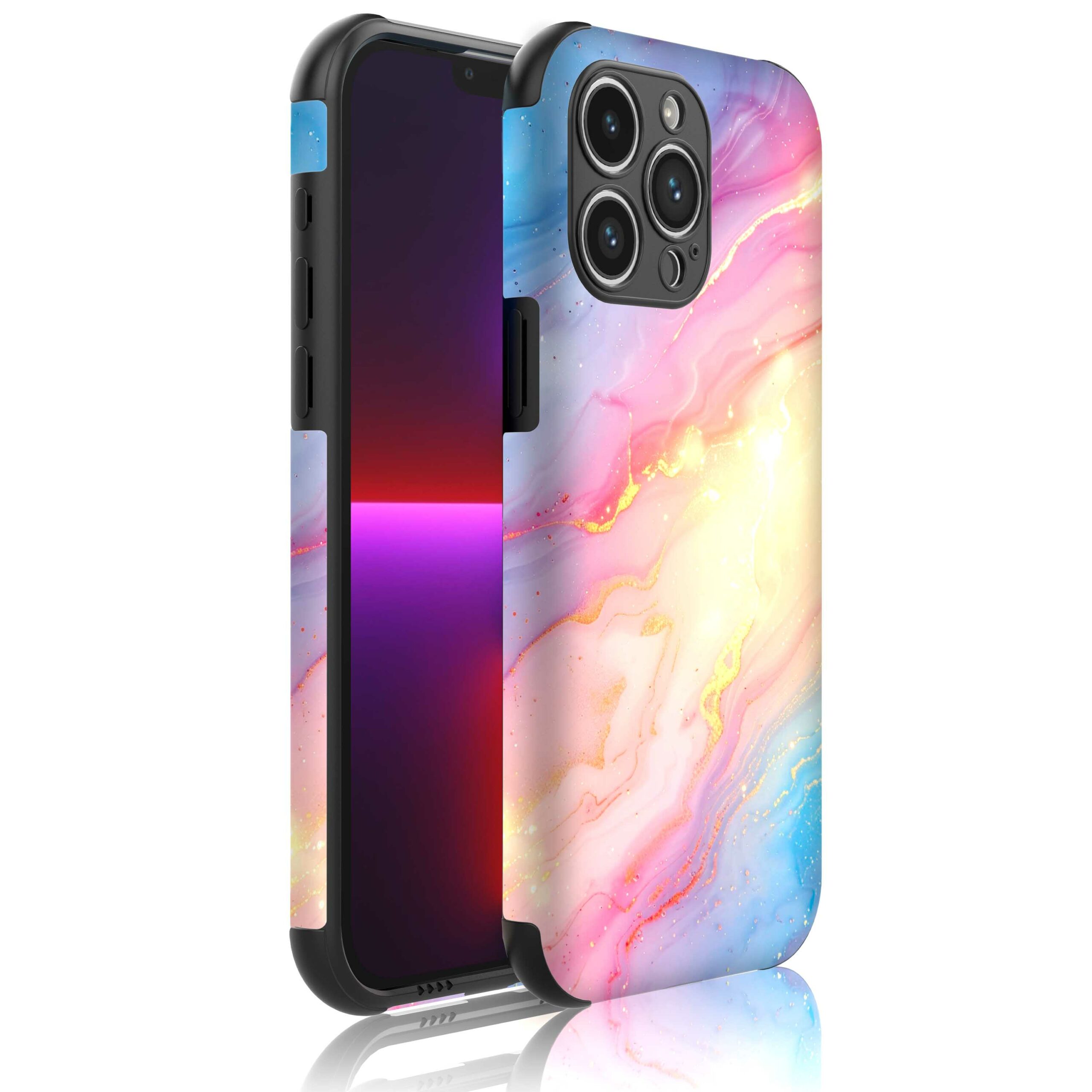 1x Telefoonhoesje geschikt voor iPhone 13 Pro Max met regenboog glitter marmer opdruk