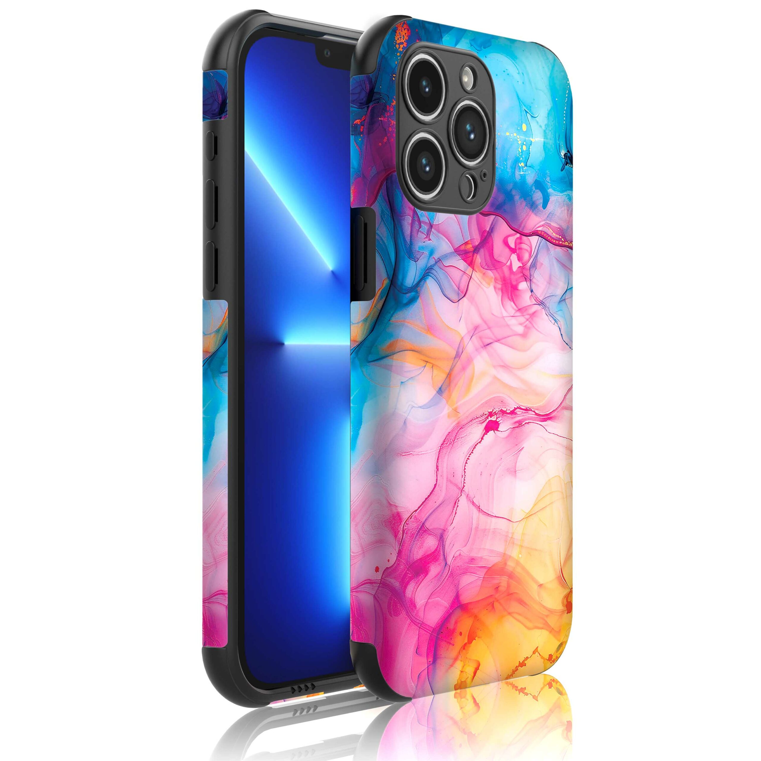 1x Telefoonhoesje geschikt voor iPhone 13 Pro met regenboog acryl marmer opdruk